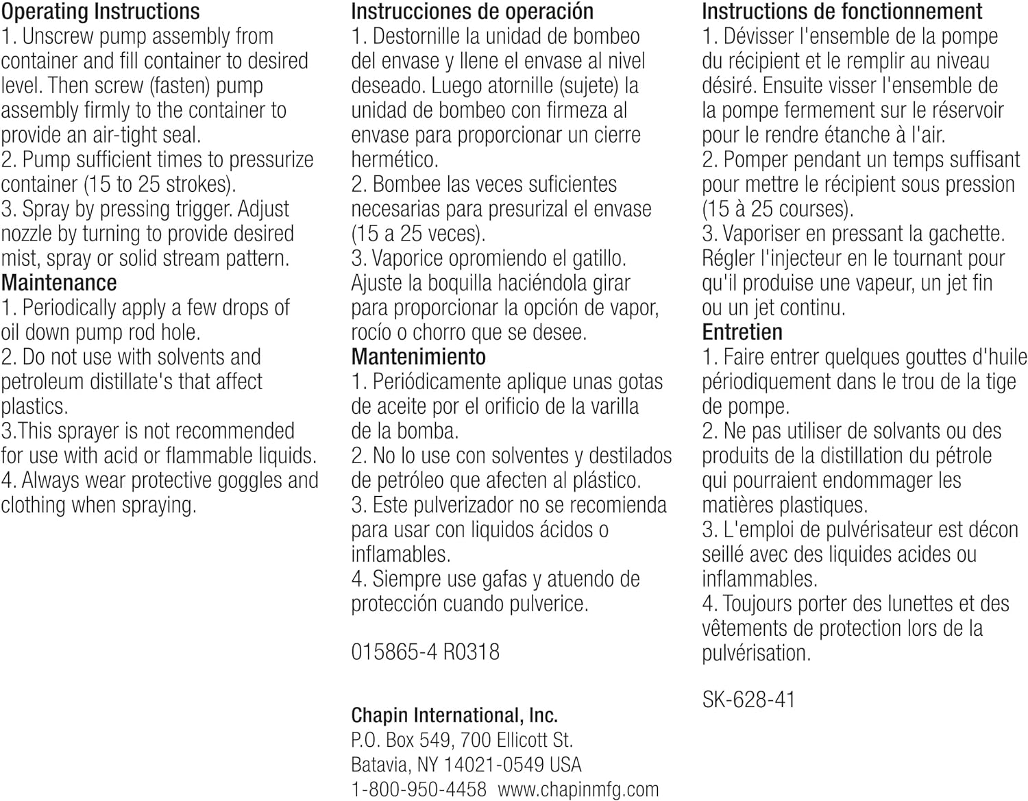 - MADE IN THE USA WITH GLOBAL MATERIALS: designed and produced in the USA, in Batavia, NY, with US-based customer service and technical support; backed by Chapin’s 1-year limited warranty