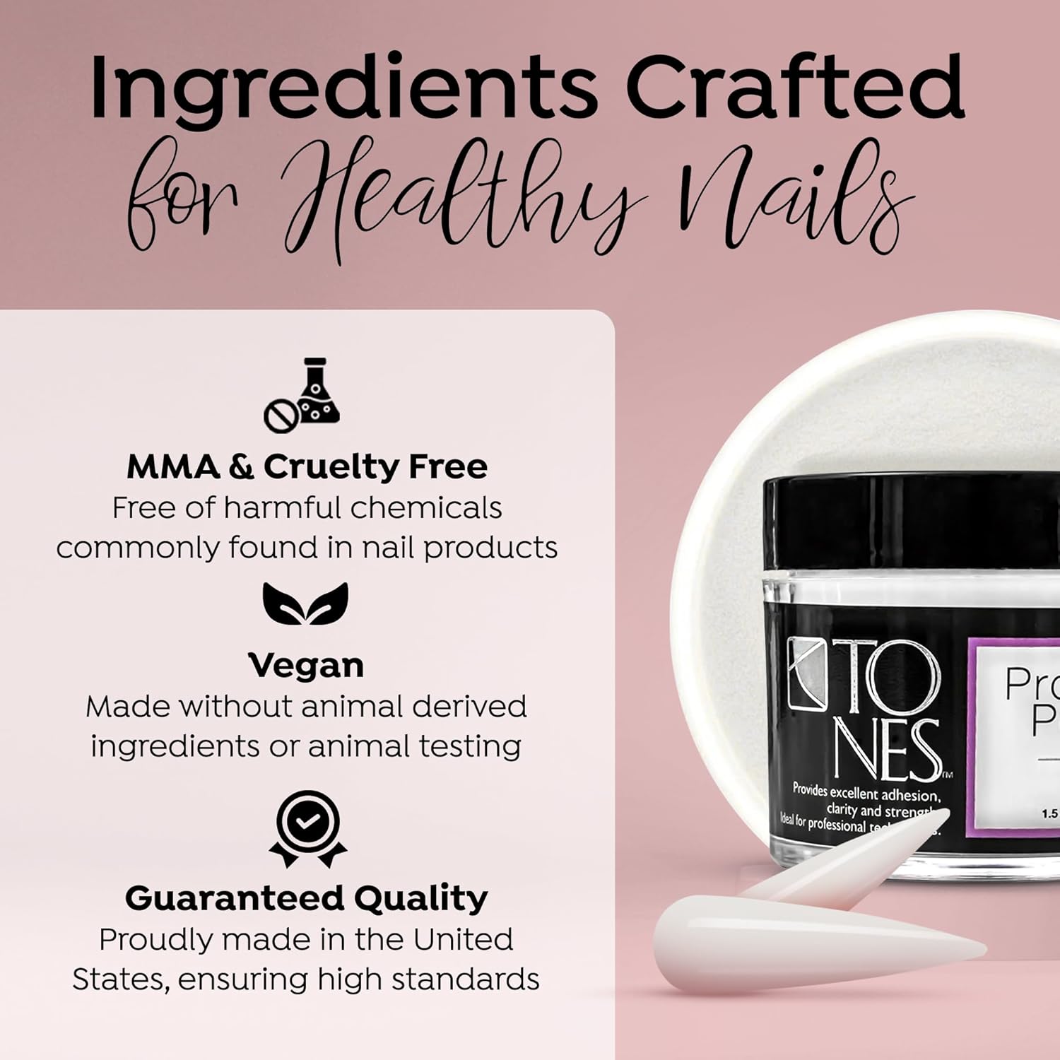 Tones Pro Acrylic Nail Powder, Glass (Clear), (1.5 Fl Oz) - Long-Lasting & Non-Yellowing Polymer for Salon Quality Nail Extensions & 3D Art