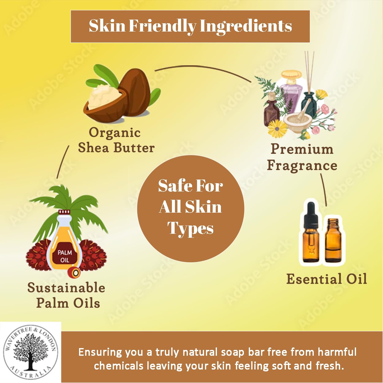- π Ingredients: Sustainable Palm oil, Palm Kernel Oil, Aqua (water), Certified Organic Shea Butter, Vegetable Glycerin, Essential Oils and/or Fragrance, Sodium Gluconate (natural sugar-based preservative), Sodium Chloride, Titanium Dioxide (food grade)