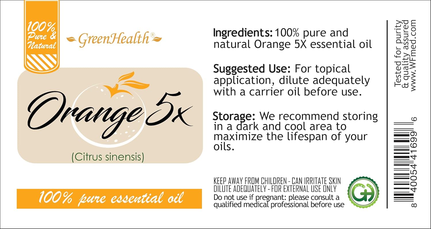 Orange 5X Essential Oil – 8 fl oz (237 ml) Aluminum Bottle w/Plug Cap – 100% Pure Essential Oil – GreenHealth