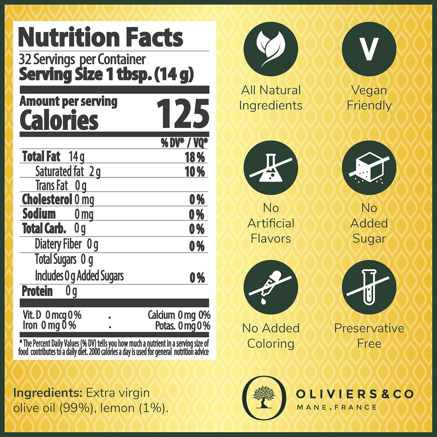 - 100% NATURAL INGREDIENTS β Made with 97% extra virgin olive oil and 3% fresh lemon (with lemon essential oil). No artificial flavors, colors, or preservatives.