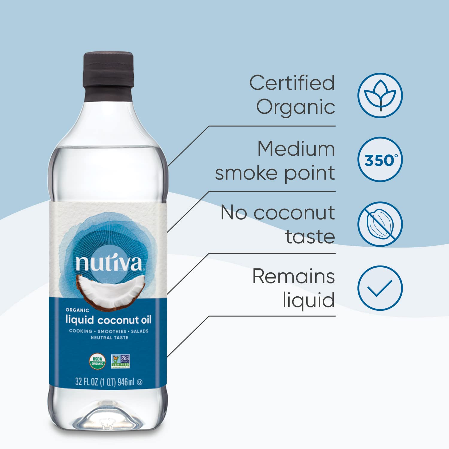Nutiva Organic Liquid Fractionated Coconut Oil 32 Fl Oz - USDA Organic, Non-GMO. Edible, Pure Coconut Oil for Cooking, Moisturizer for Skin, Hair Treatment. Contains Natural MCTs.