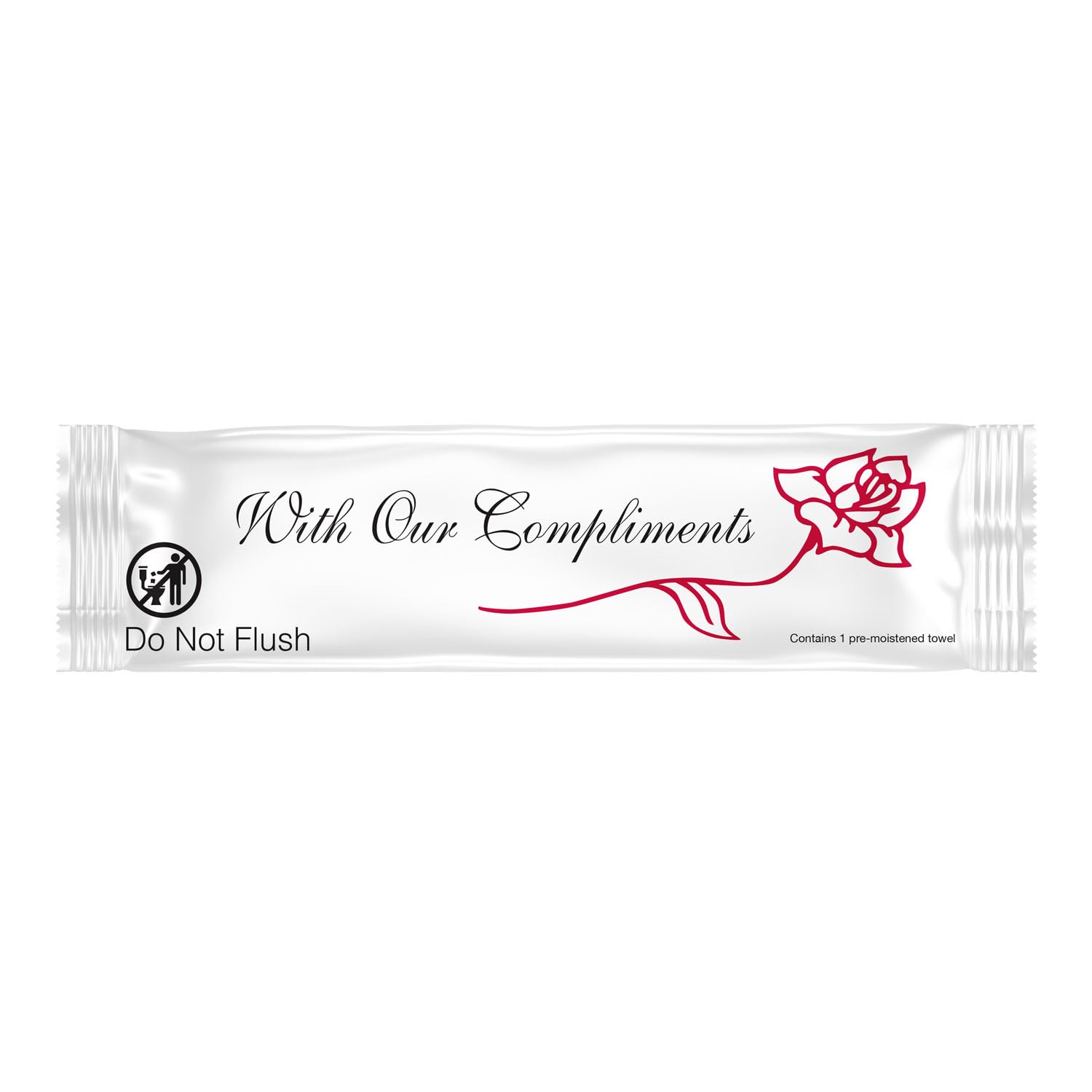 Diamond Wipes Pre-moistened Hand Wipes - “With Our Compliments” Logo 10x8” Extra Thick Lemon-Scented Pack of 50 Individually Wrapped Wet Wipes