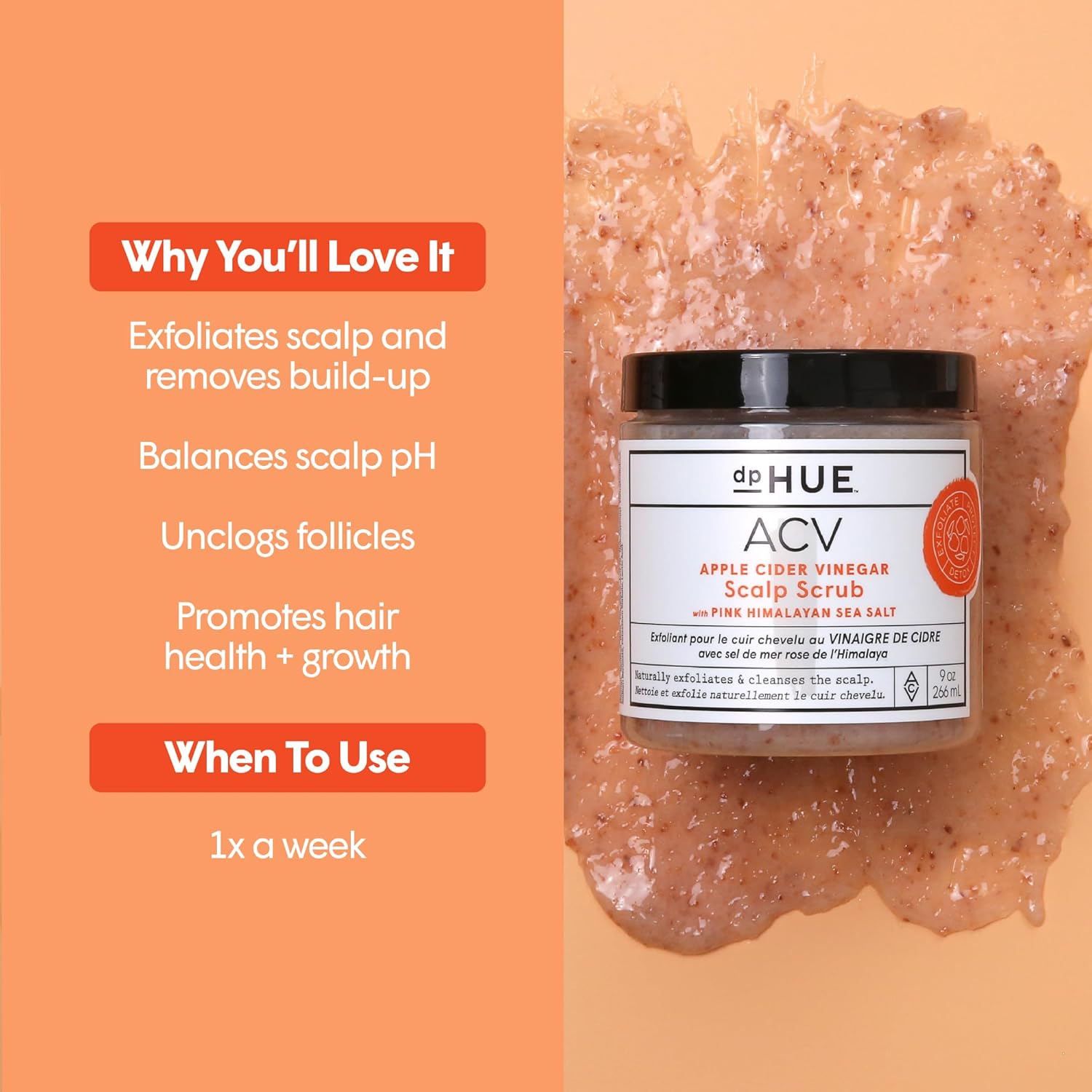 dpHUE Apple Cider Vinegar Scalp Scrub with Pink Himalayan Sea Salt, 9 oz - Natural Exfoliating Scrub & Dry Scalp Treatment - Aloe Vera & Avocado Oil - Gluten Free, Vegan
