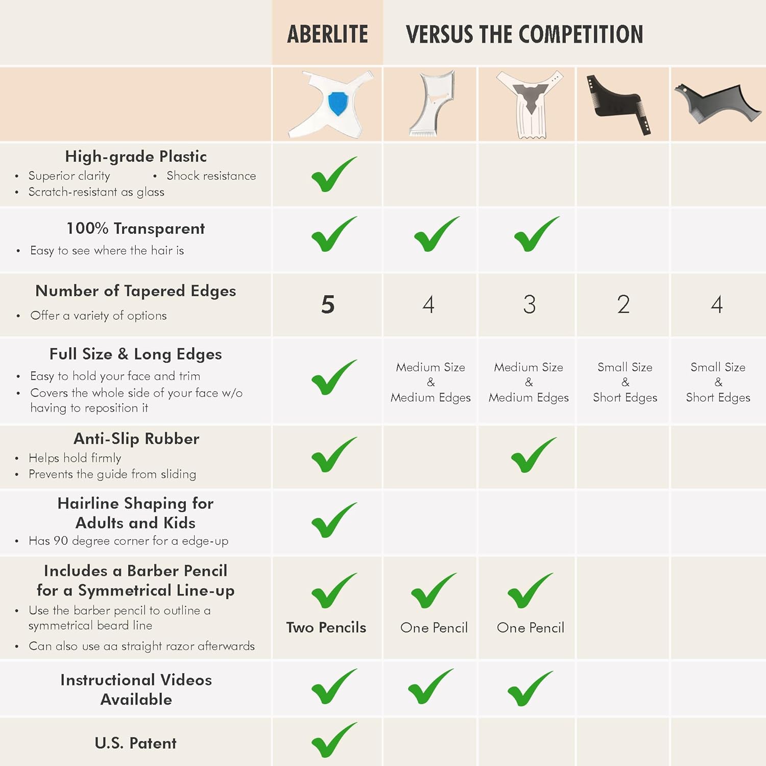 Aberlite ClearShaper 3.0 - Beard Shaper Kit w/Two Barber Pencils - Premium Shaping Tool - 100% Clear | Many Styles - The Ultimate Beard/Hair Lineup (US Patent) - Stencil Guide Template Outliner