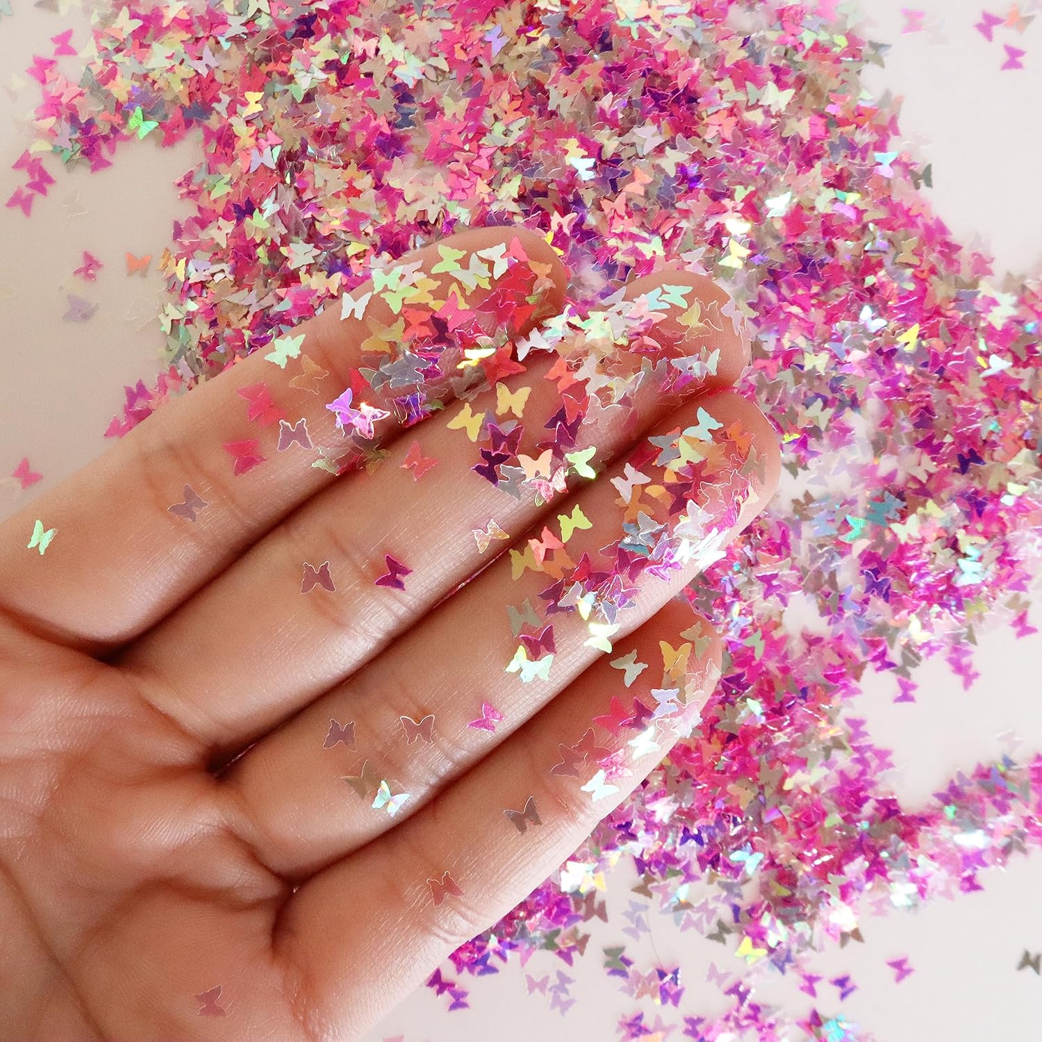 Pink Butterfly Face & Body Glitter - Chunky Glitter - Cosmetic Grade - Uses Include: Festival Rave Makeup Face Body Nails Resin Arts & Crafts, Resin, Tumblers, Bath Bombs - Solvent Resistant