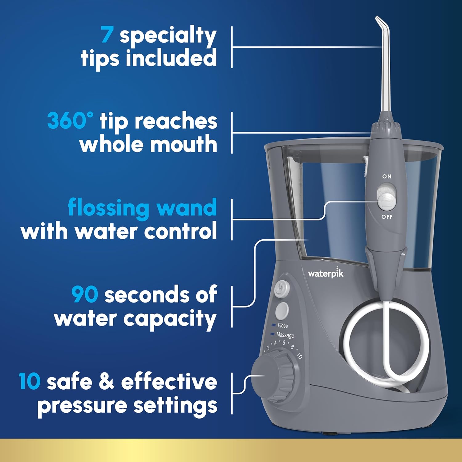 Waterpik Aquarius Water Flosser For Teeth Cleaning, Gums, Braces, Dental Care, Electric Power With 10 Settings, 7 Tips For Multiple Users And Needs, ADA Accepted, Gray WP-667, Packaging May Vary