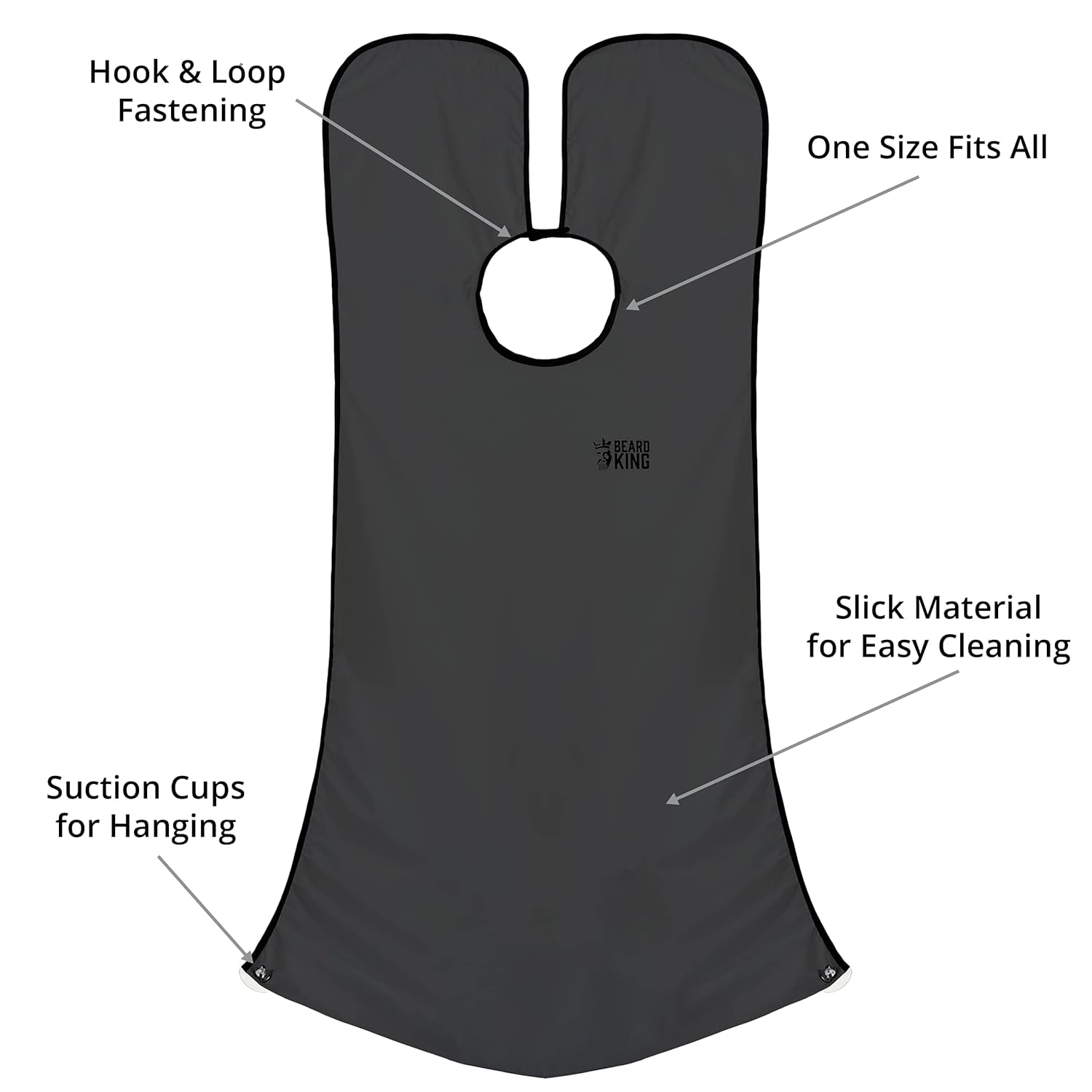 BEARD KING Beard Bib Apron - Shaving Set for Dad - As Seen on Shark Tank - Men's Hair Catcher for Shaving - Grooming Accessories, Black