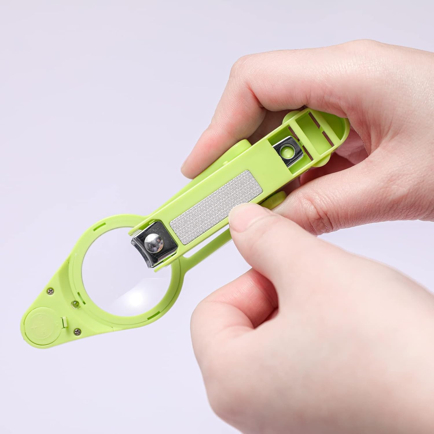 - 【Professional nail clippers】: The nail clipper with a 2.5X magnifying glass for a clear and natural view to reduce eyestrain. The angle and position of the magnifying glass can be adjusted to fit different needs. With LED lights, you can clearly see your fingers even in low light, and cut your nails perfectly