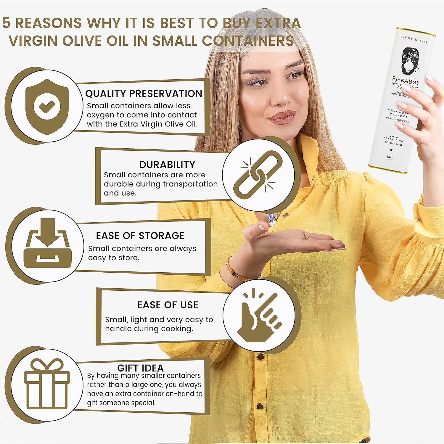 - Delicious Taste – Tasting intensity: Medium. Tasting characteristics: Aromas of cut grass, artichoke, basil and notes of tomato stem. Taste exhibits abundant fruitiness, medium bitterness and pungency with notes of arugula, flowers, mint and green almond. A high persistence and complexity. Give your cuisine that authentic Mediterranean taste.