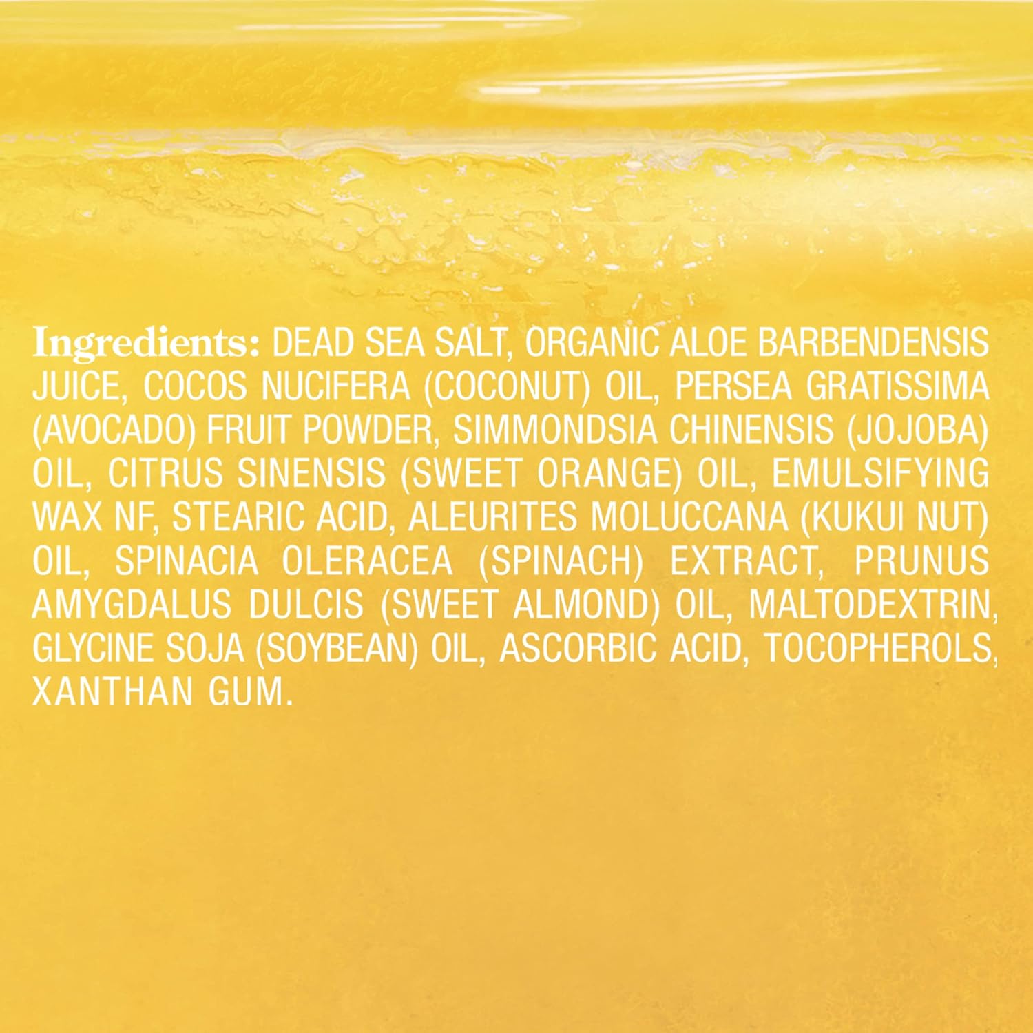 - Crafted with wonderful nourishing ingredients such as Sweet Orange Oil, Dead Sea Salt, Organic Aloe Vera Juice, and Coconut Oil.