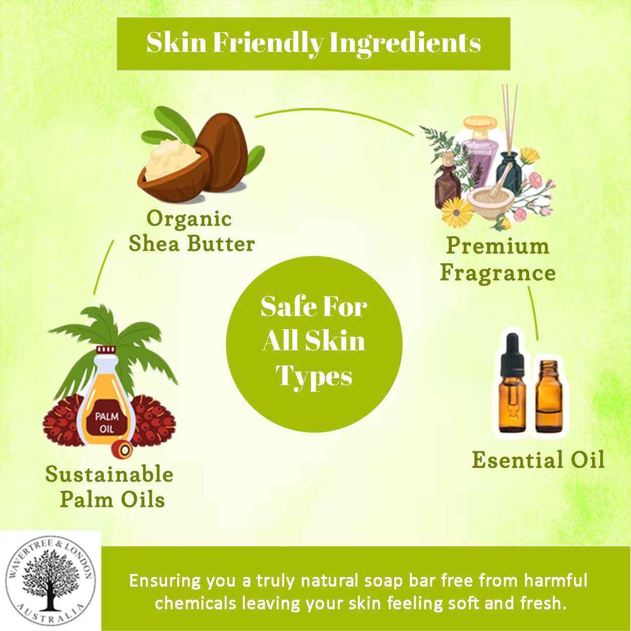 - π Ingredients: Sustainable Palm oil, Palm Kernel Oil, Aqua (water), Certified Organic Shea Butter, Vegetable Glycerin, Essential Oils and/or Fragrance, Sodium Gluconate (natural sugar-based preservative), Sodium Chloride, Titanium Dioxide (food grade)