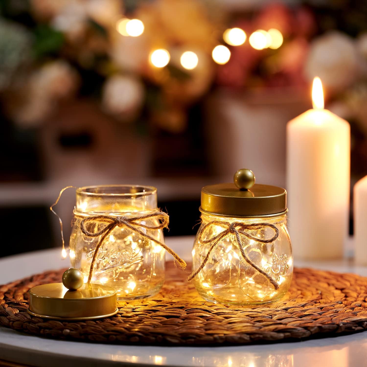 • ✔️Versatile Gift Idea: Ideal for a variety of occasions, this bathroom organizer and storage set is perfect for weddings, housewarming events, birthdays, Mother's Day, Thanksgiving Day, Christmas, New Year, bridal showers, and baby showers. It also makes an excellent gift for mothers, friends, sisters, co-workers, or anyone else, suitable for use throughout the year. The package includes: 2 pack glass mason jars with stainless steal lids. 2 Decorative Twines. 2 Cute Label Stickers.