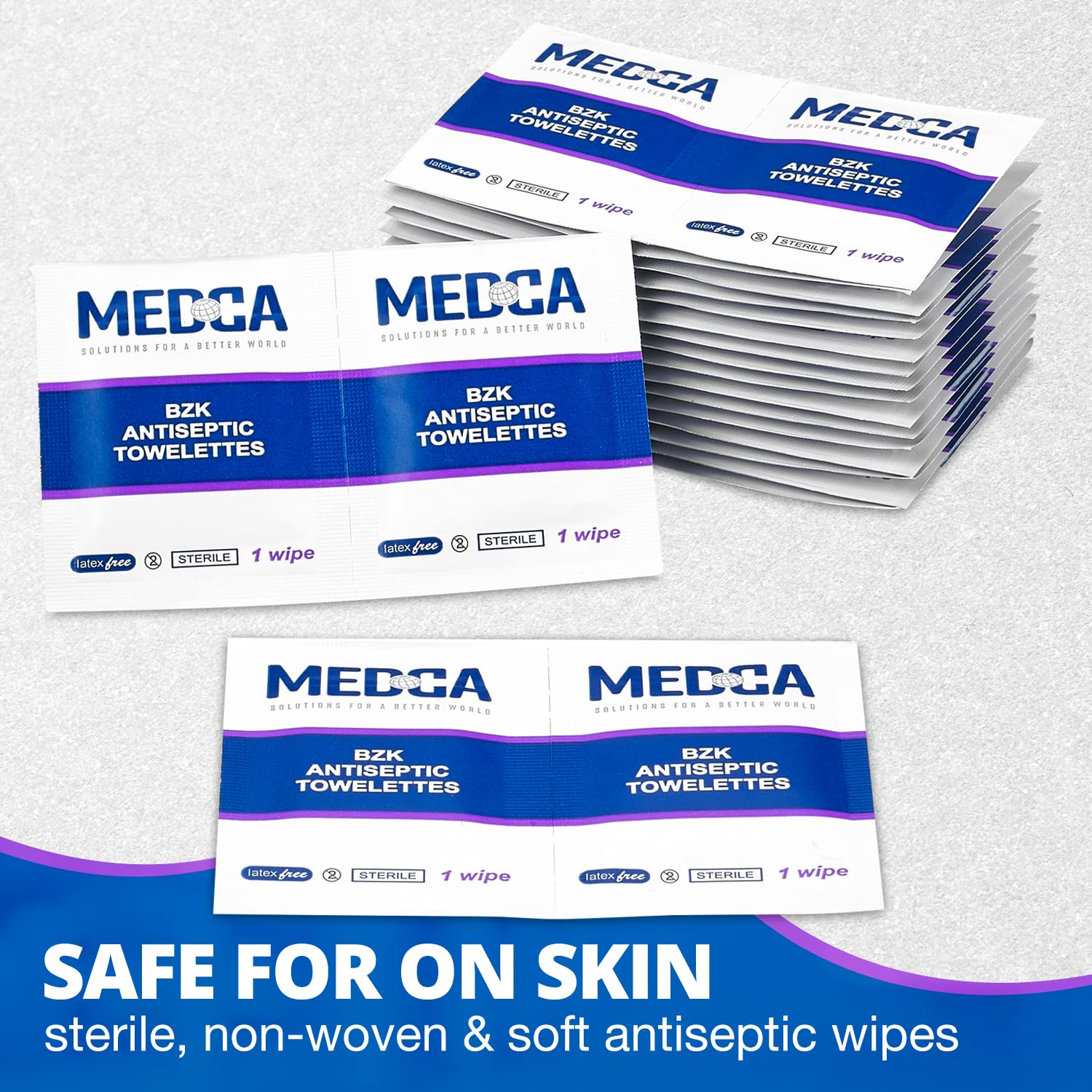 - ☑️GENTLE ON SKIN WIPES: Ever been searching for an effective solution that cleans and is gentle on your skin!? The MEDca Benzalkonium Chloride wipes is both! With power to clean your hands, scrapes, cuts, minor burns, cleans multiple surfaces such as laptops and cell phones as well as medical devices! They are lightweight and small, which means that they are the perfect size for travel and first aid kits