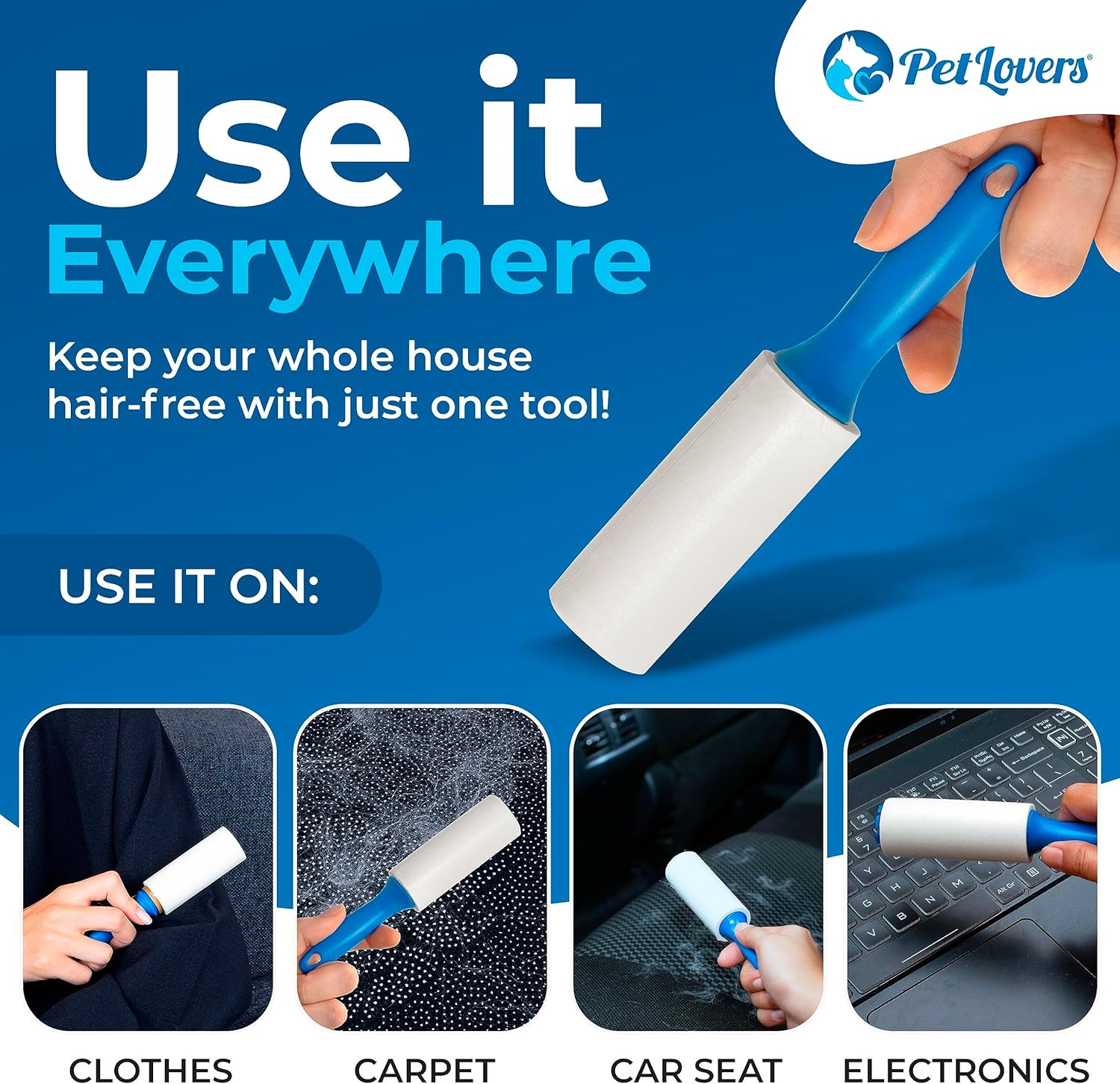 PetLovers Extra Sticky Lint Roller Mega Value Set for Pet Hair Removal and Clothes, Dog and Cat Lint Remover (Blue, 4 Pack Mini)