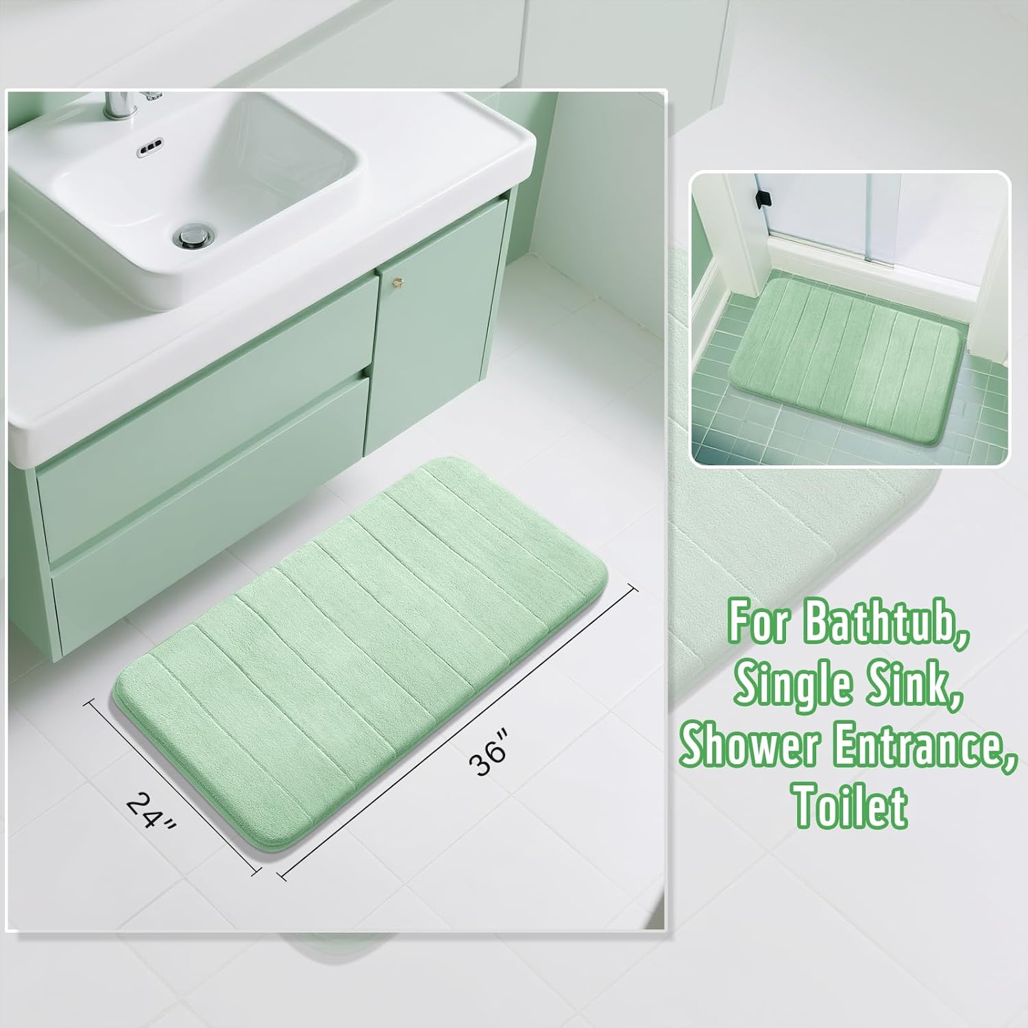 Yimobra Large Bath Mat 36"x24", Super Soft Quick Dry Memory Foam Bathroom Rug, Water Absorbent, Non Slip Backing Machine Washable for Tub Shower, Thick Comfort Support, Pale Green