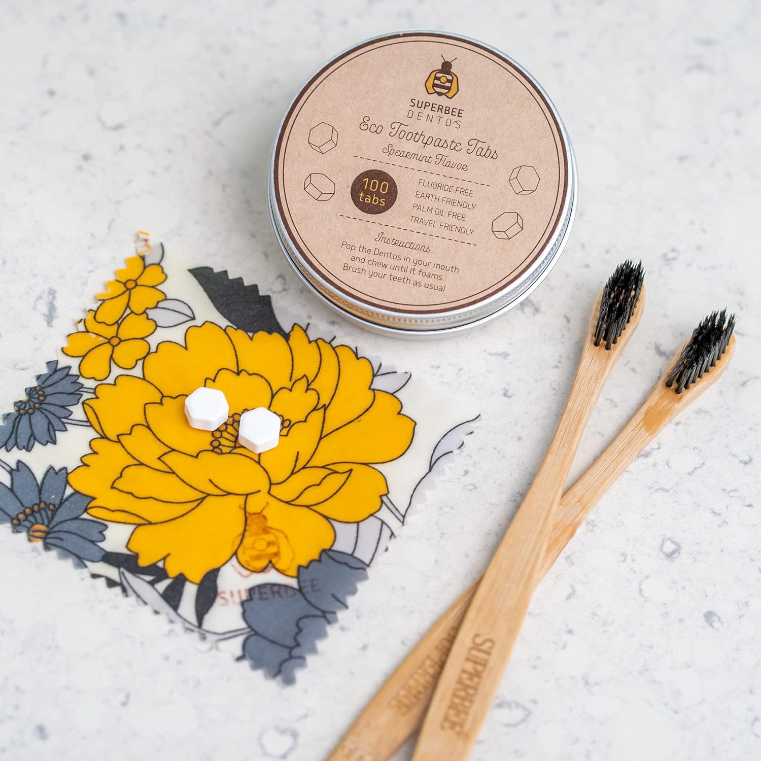 SuperBee Dentos Toothpaste Tablets, 100 Tabs, Fluoride Free & Eco Friendly, Travel Mouthwash Tablets, Sensitive Bites Kids Adults, Chewable Tablet, Spearmint