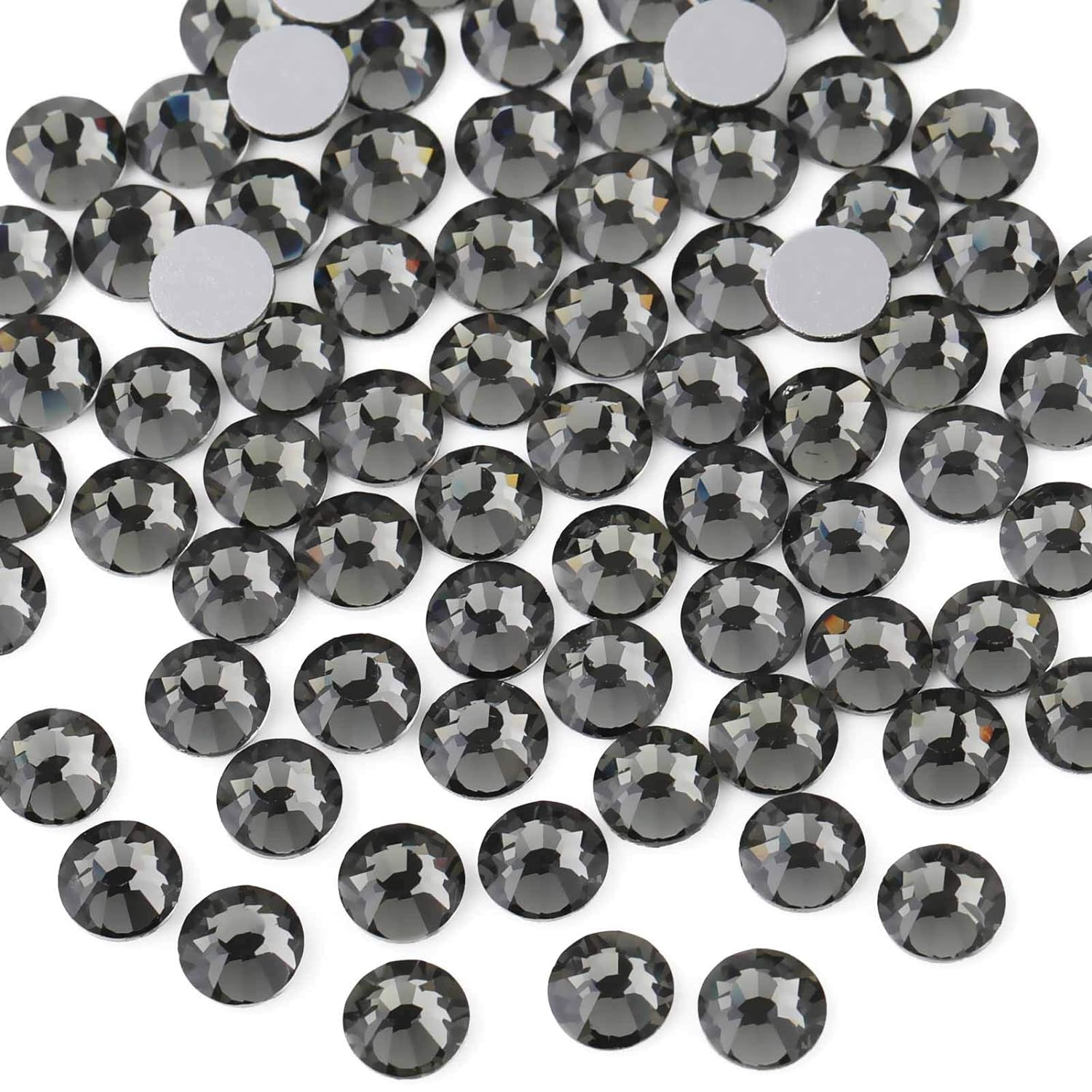 beadsland Flat Back Crystal Rhinestones Round Gems for Nail Art and Craft Glue Fix,Black Diamond (2.7-2.8mm) SS10/1440pcs