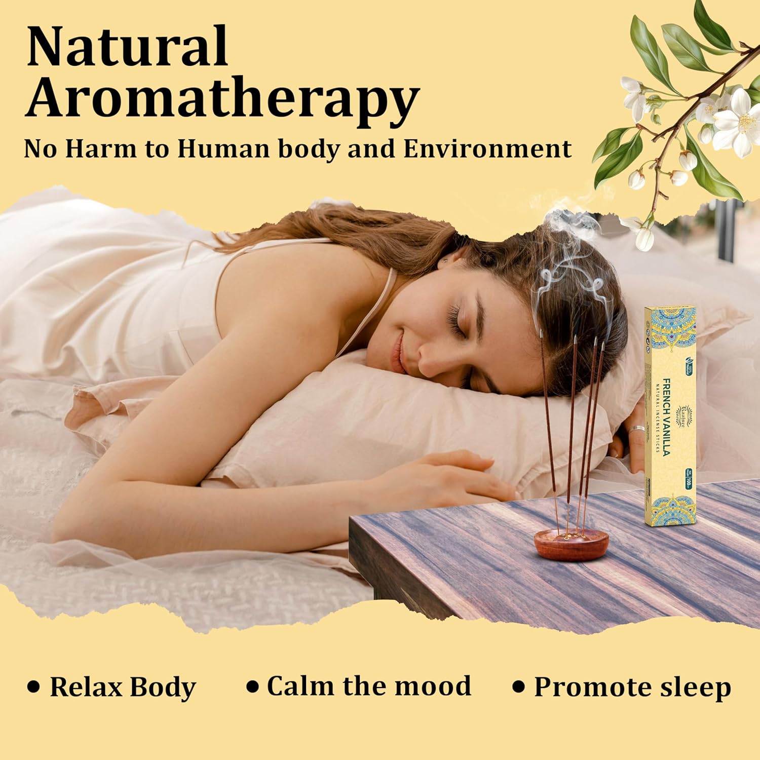 - Guarantee 100% natural incense sticks chemical free organic, pure herbal ingredients without any chemical fragrance. You can free return for any reason.
