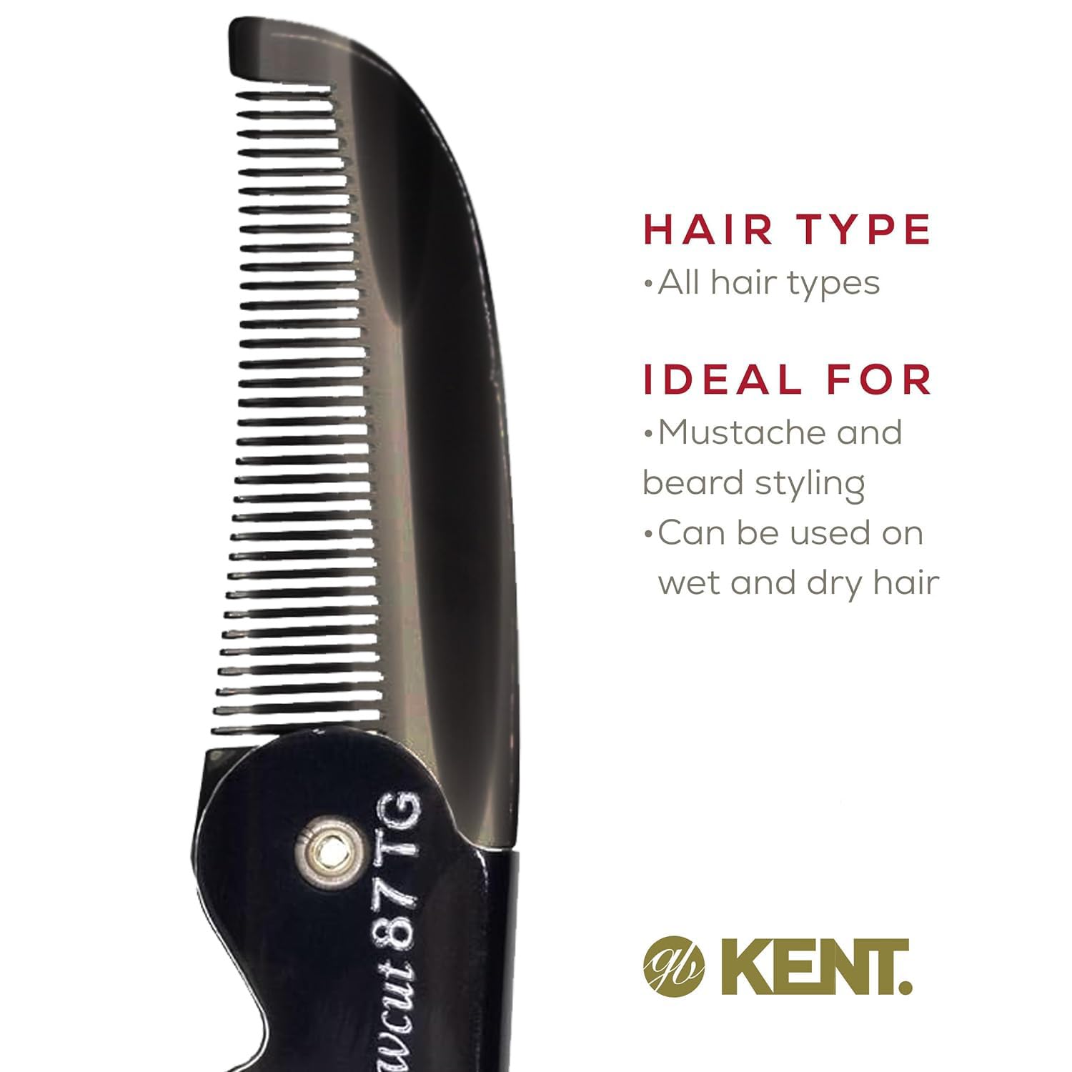 - 4.5 inch open / 2.5 inch closed - Tortoiseshell finish folding mens comb. The best Kent mustache and mustache combs for men hair comb, fits perfectly into your jeans or back pocket so you can groom your facial hair anytime, anywhere
