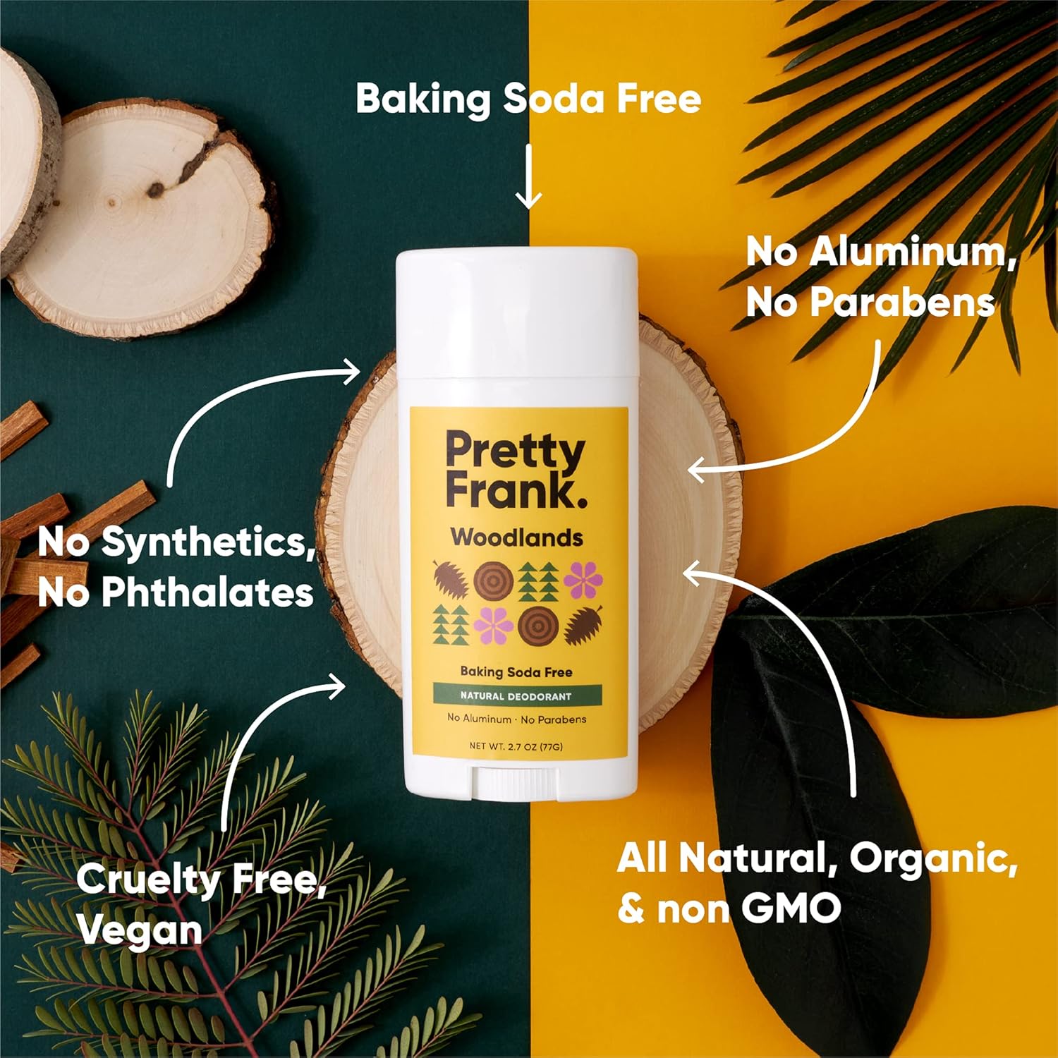 - WOODLANDS - Hints of sweet bergamot, warm sandalwood, and fresh cypress create a down-to-earth aroma from essential oils. Pretty Frank natural deodorant is easy to use with just 1-2 swipes and pure enough to put anywhere. Use it on your pits, bits, feet - wherever you need odor protection.