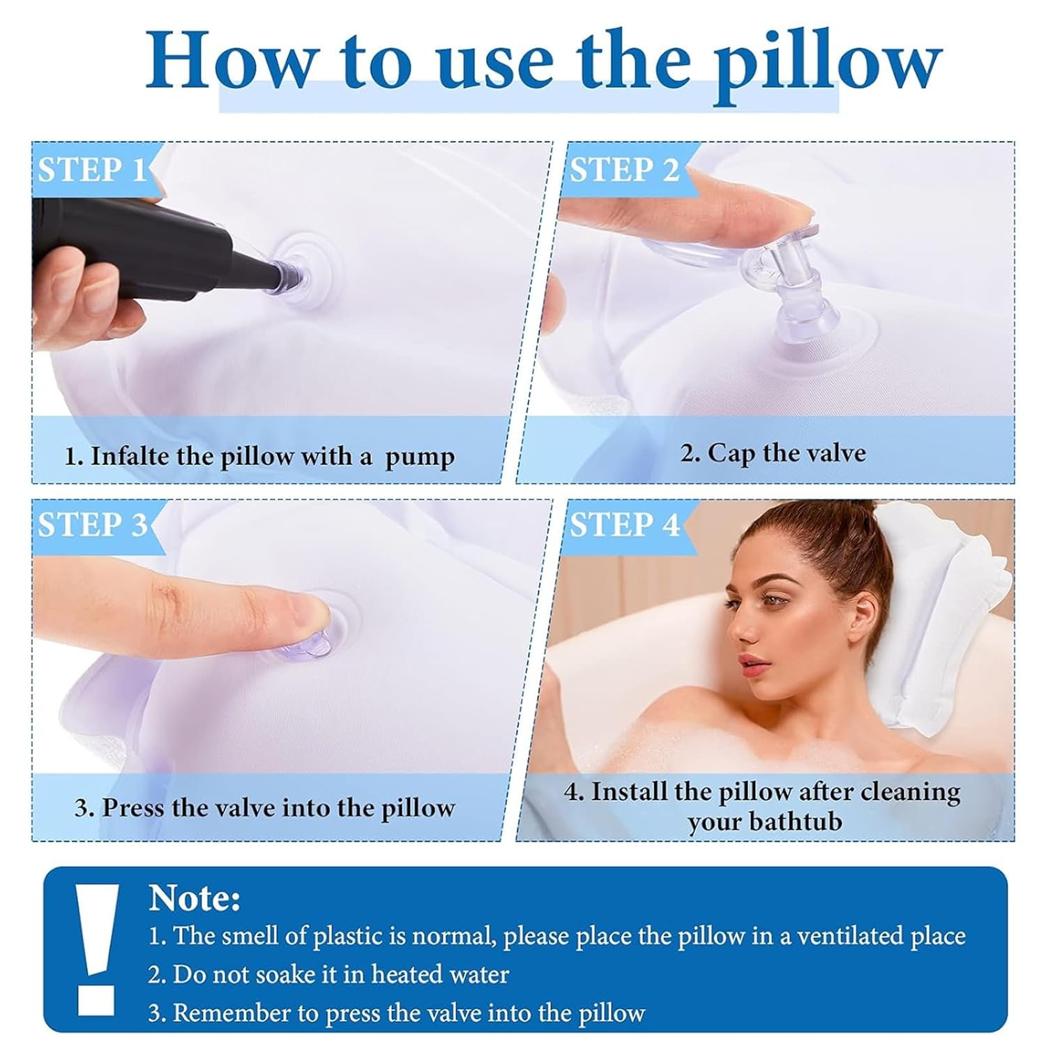 - Simple to inflate: the white bath cushions are better to be inflated with air, once being inflated, the valve can firmly lock the air and will not leak for several days, you can also adjust the pillow according to the shape of your bathtub, a practical tool in multiple ways