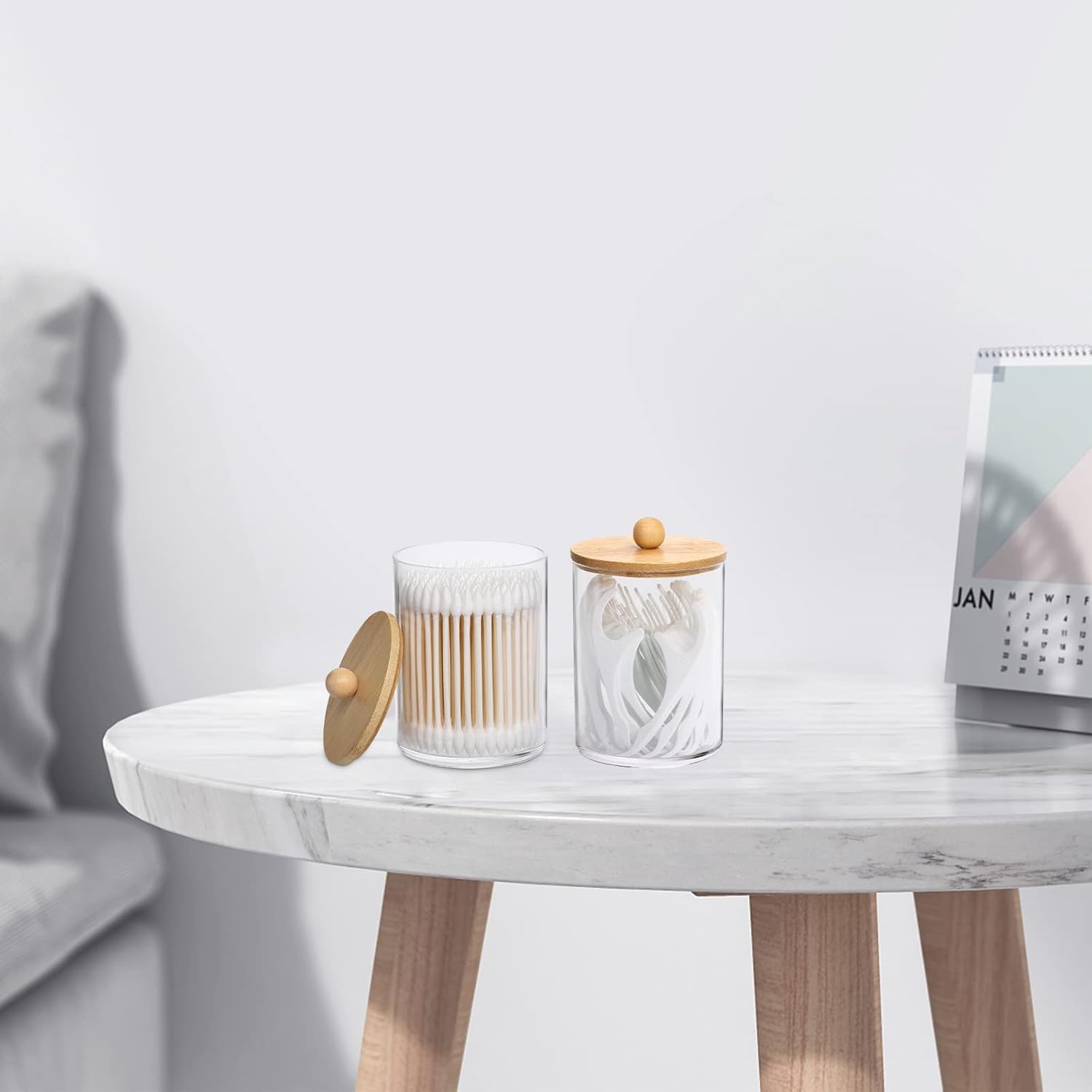 - Each cotton ball dispenser has a natural bamboo lid which is healthy, environmentally friendly and keeps from dust