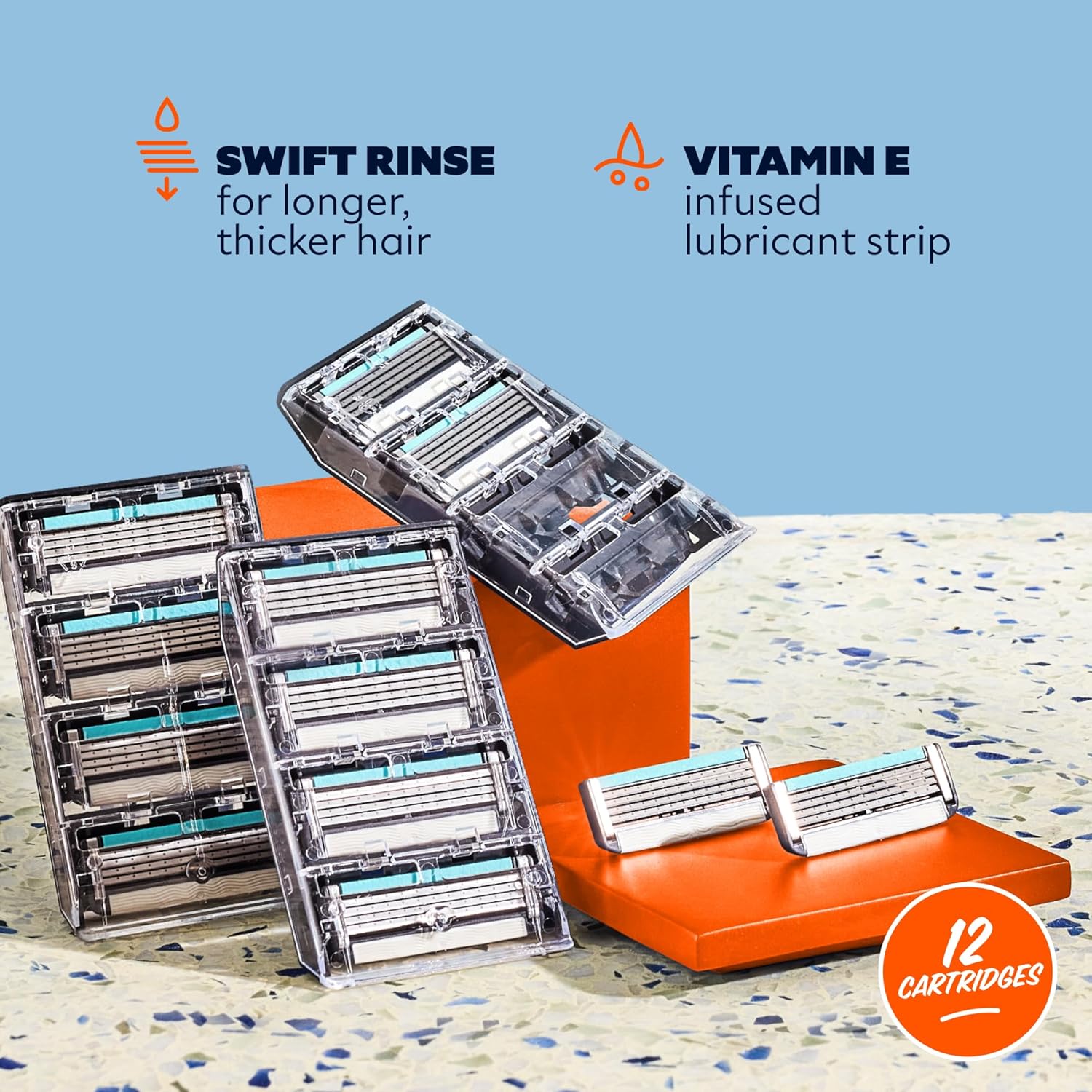Dollar Shave Club | 4 Blade Razor Refills (12 Pack) | Swift Rinse Blades for Longer and Thicker Hair