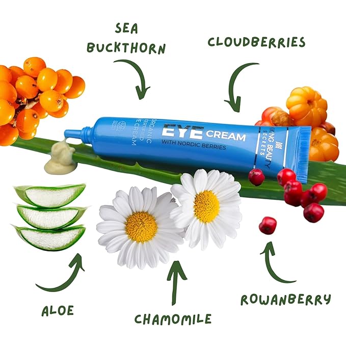 - ๐๐๐ซ๐ญ๐ข๐๐ข๐๐ ๐๐ซ๐ ๐๐ง๐ข๐ ๐๐ง๐ ๐ซ๐๐๐ข๐๐ง๐ญ๐ฌ: Ecocert COSMOS Certified Organic Eye Cream. Contains certified organic and natural ingredients only. Our eye cream contains no harmful chemicals and is non-GMO. It is also free from Artificial Colors and Fragrances. All Viking Beauty Secrets products are cruelty-free.
