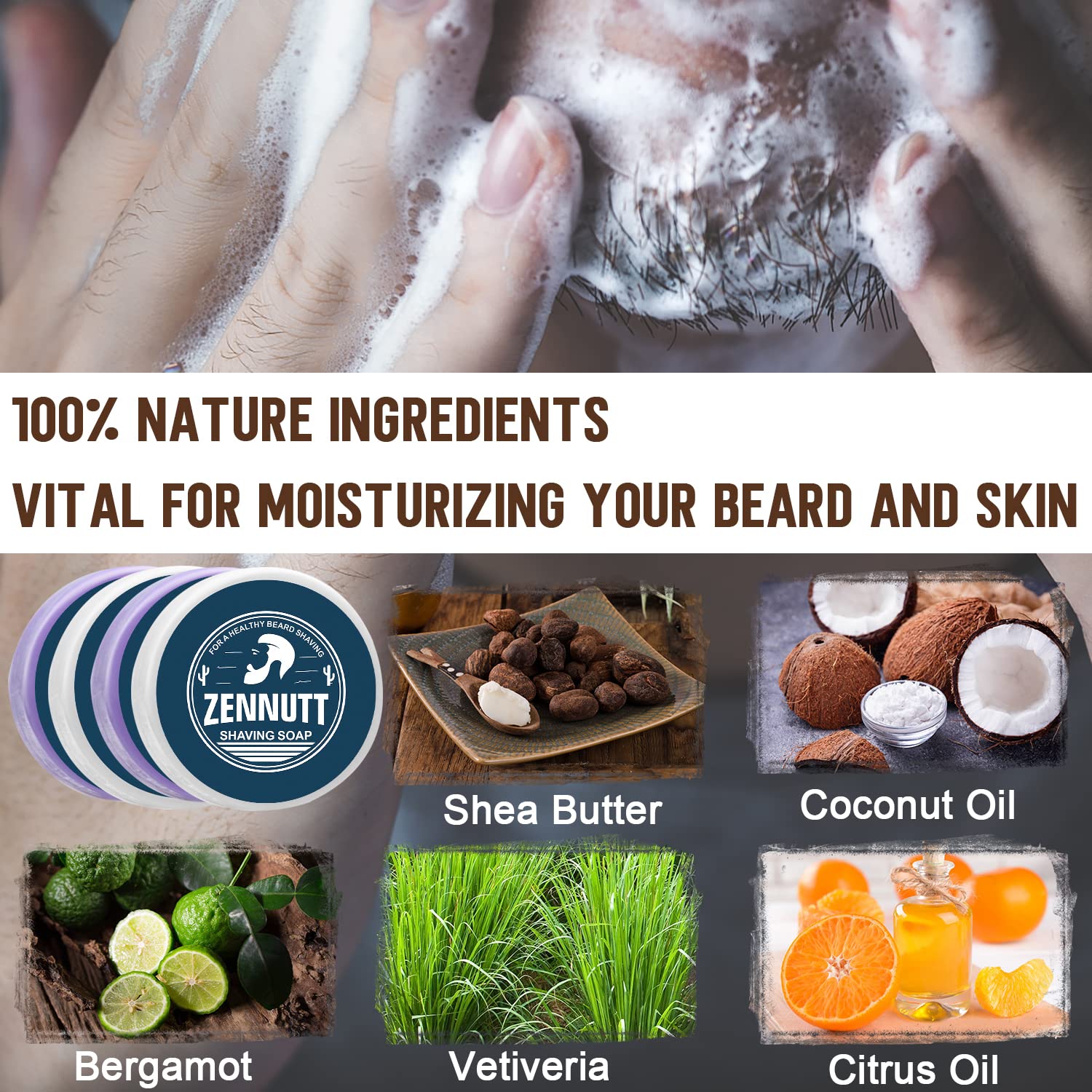4 Packs Shaving Soap w/Shaving Bowl,Shaving Brush,Shaving Cream,Unqiue Gift Set Mens Shaving Kit for Christmas Stocking Stuffers for Him Boyfriend Dad Adult Husband Birthday Valentines Day