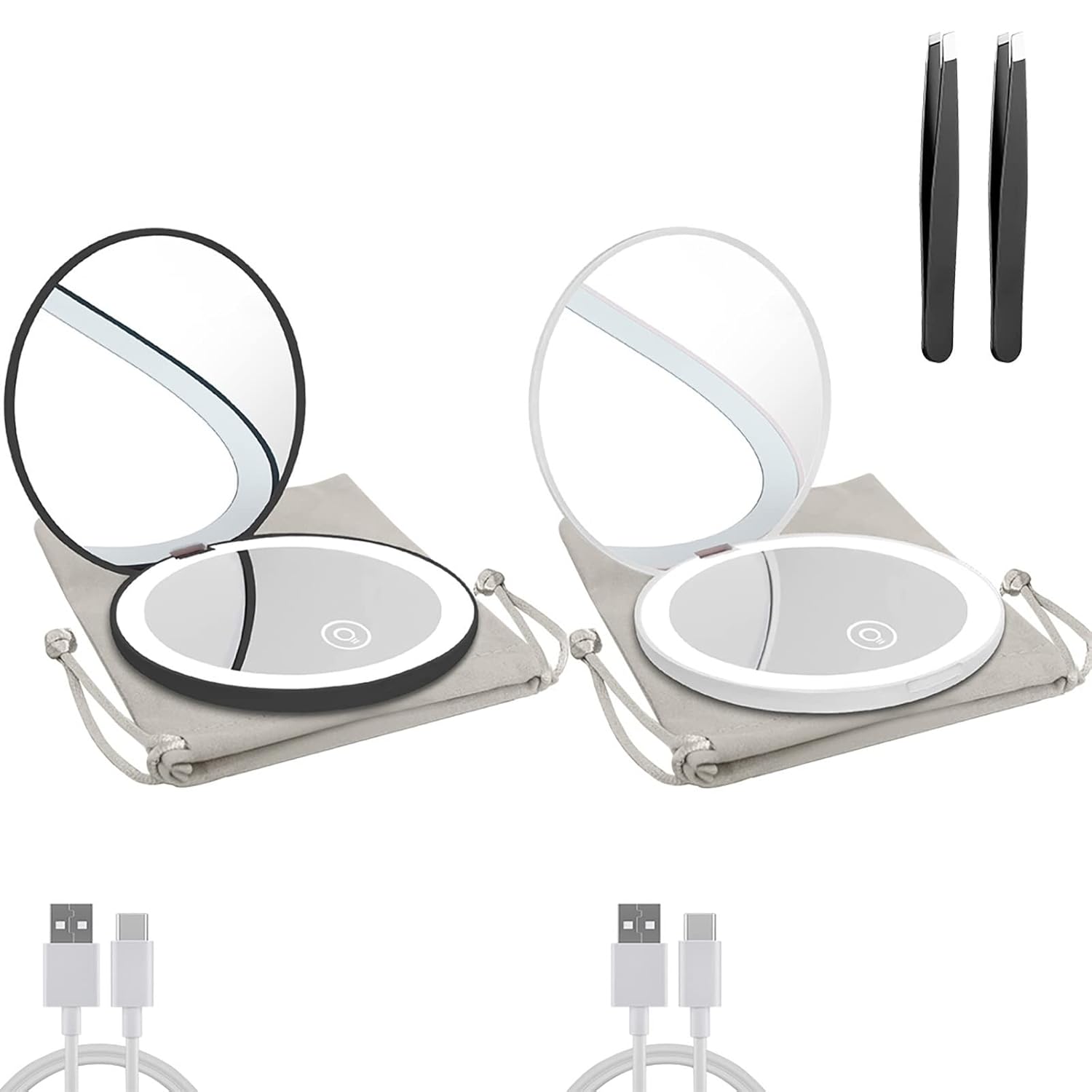 • 【What You Get & Product Guarantee】: Including: 1*Lighted Makeup Mirror 1*USB Type-C Cable(Note: The acceptable power adapter is 5V,1A-2A.)1*User Manual 1*Storage bag 1x Tweezer. FCC, CE, ROHS approval. 12 months warranty and 24-hour friendly customer service.
