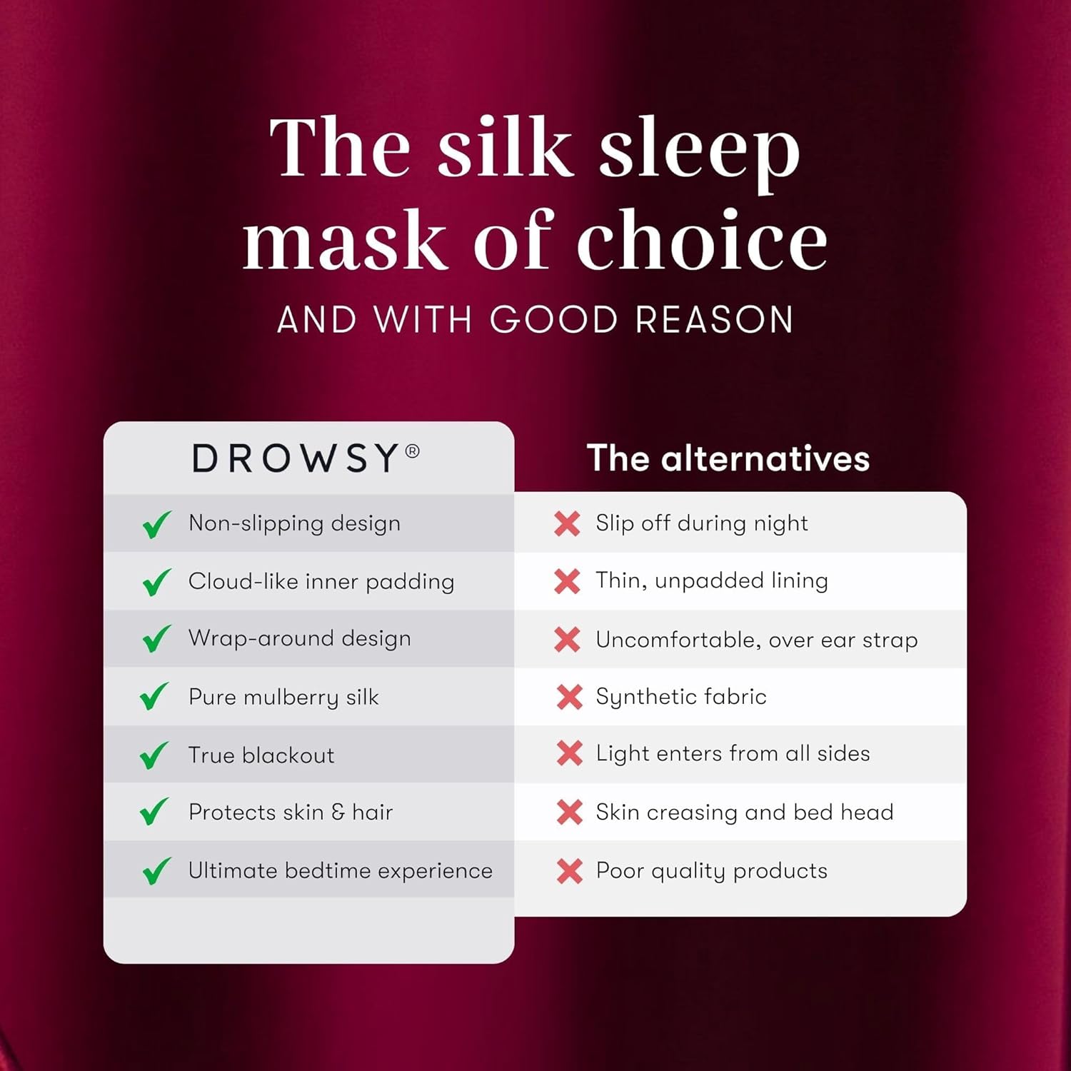 - ✔︎ THE WORLD’S MOST LUXURIOUS SLEEP MASK – Loved by beauty editors and celebrities around the world. Multi award-winning. Drowsy is the beauty industry’s silk sleep mask of choice. Wrap your eyes in padded silk for an uninterrupted, glorious sleeping experience every night.