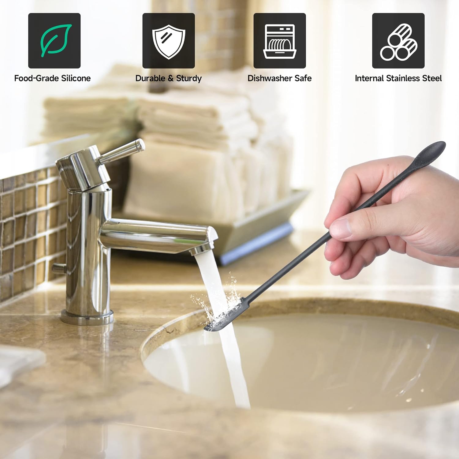 Mini Spatula Silicone Spatula Set - 4pcs Small Makeup Scrapers for Cosmetics, Reusable Beauty Tiny Tools, Thin Jar Scraper, Get the Last of the Makeup Out of the Bottle(Black)
