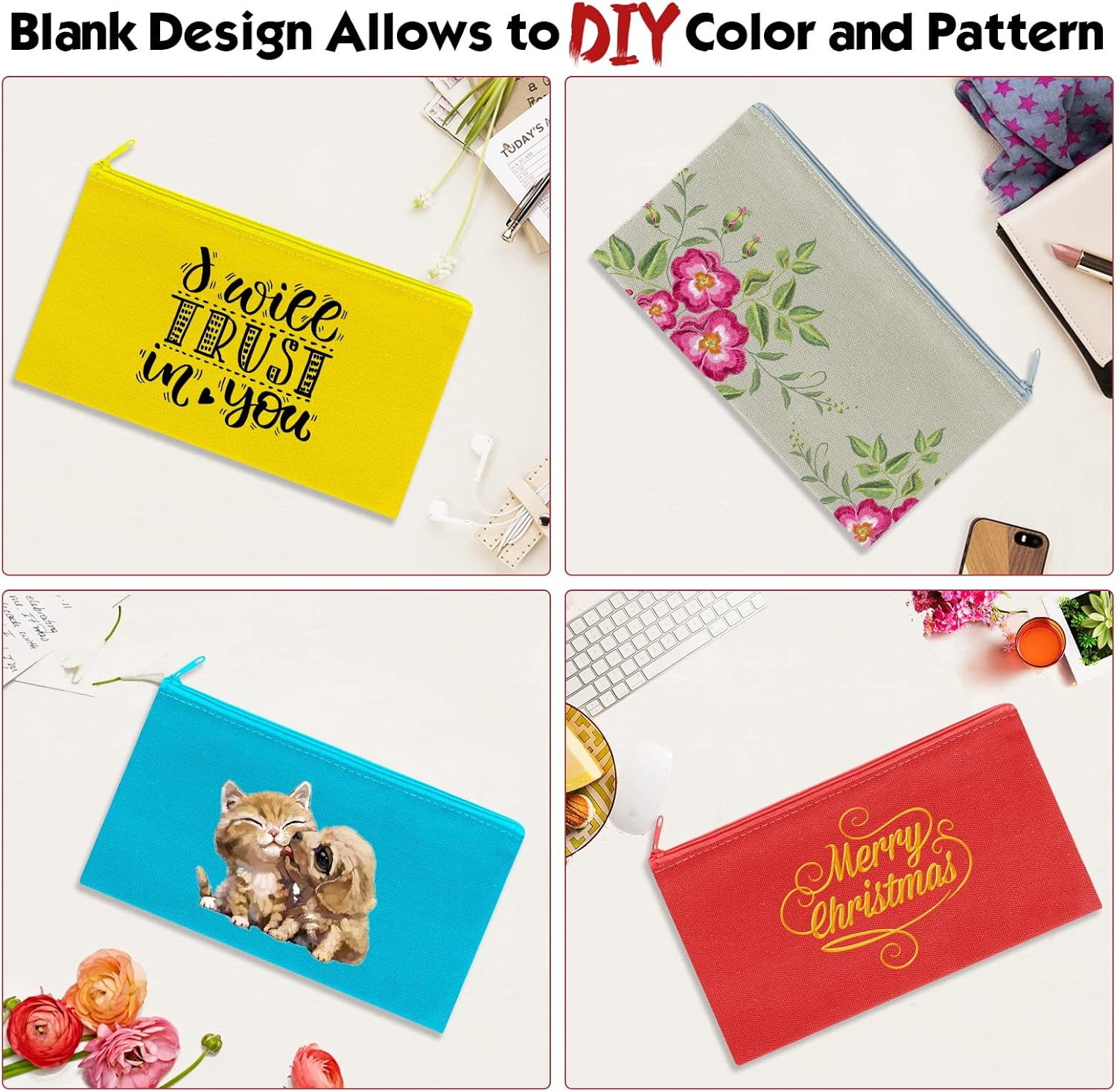 12 Pieces Cotton Canvas Makeup Bag, Multipurpose Cosmetic Bag with Zipper Travel Toiletry Pouch, Blank DIY Craft Bag (Multicolored A, M)