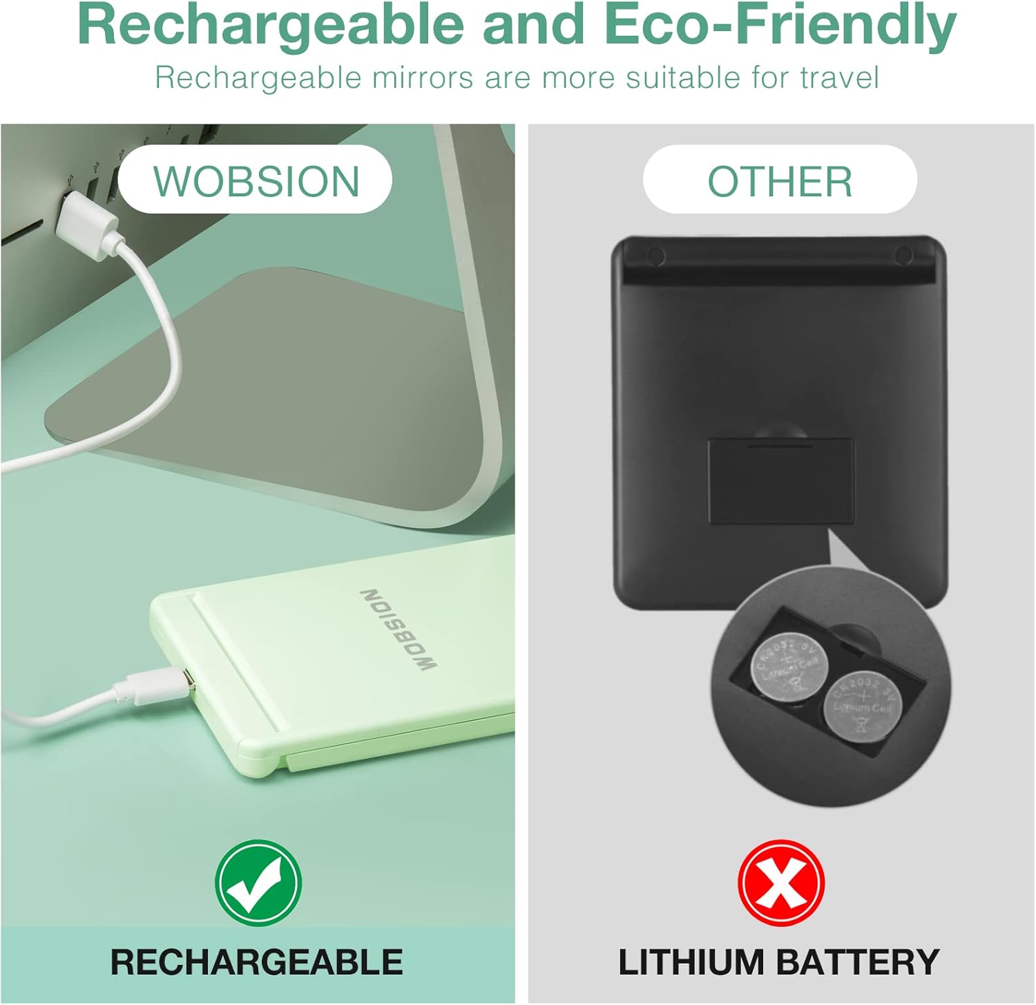 - Rechargeable Compact Mirror with Light:No need batterys,long lasting,one charge can last for 4-5 hours,only takes 1-2 hours to fully charge.Perfect for travel