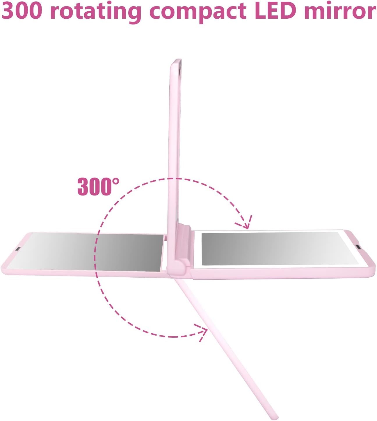 - 300°Flip Folding Portable Mirror:This travel makeup mirror can achieve a 300-degree flip, so whether you want to use the magnified mirror or the illuminated mirror, you can place it at will.Can be handheld or stand on