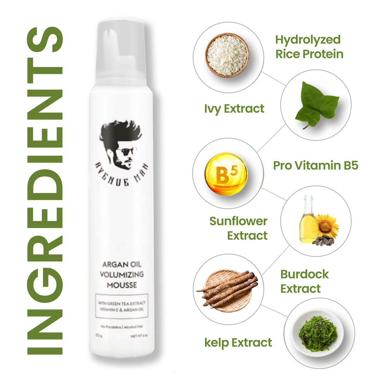 Avenue Man Argan Oil Mousse - Thickening & Volumizing Mousse for Men - Strong Hold, Frizz Control & Humidity Resistance - Herbal-Infused Mens Hair Foam - Long-Lasting Hair Mousse for Men (6.0 oz)