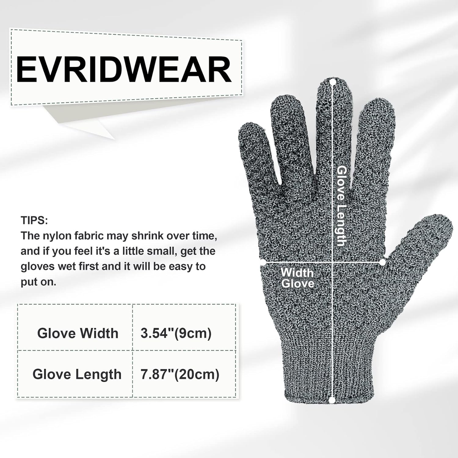 Evridwear Exfoliating Dual Texture Bath Gloves for Shower, Spa, Massage and Body Scrubs, Dead Skin Cell Remover, Gloves with Hanging Loop (1 Pair Gray Heavy Glove)