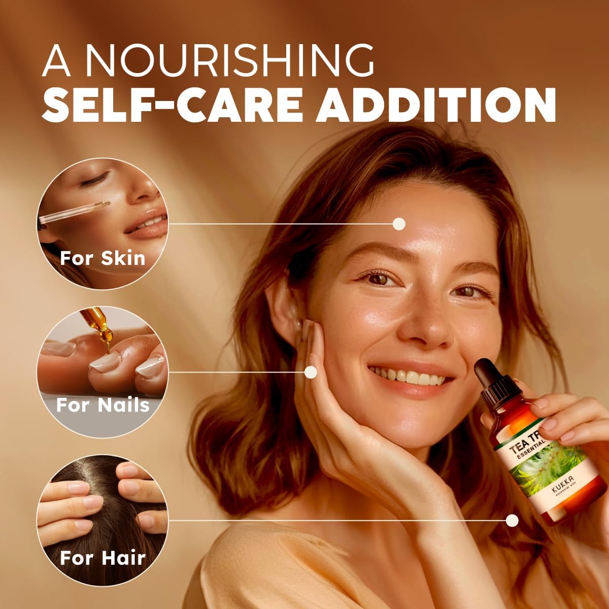 - Nourish hair for vitality with our tea tree oil, promoting healthy locks. Enriched with nutrients, it stimulates the scalp for strength and fullness. Say goodbye to dryness as it restores moisture, leaving hair soft and manageable .