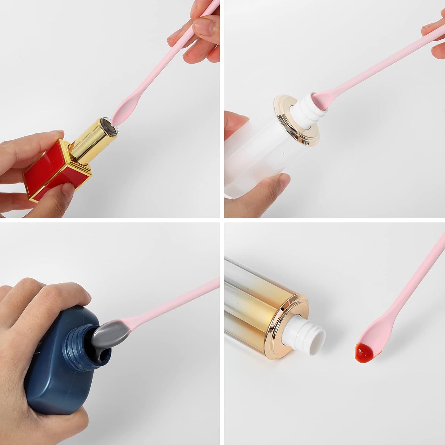 6 Pieces Multi Size Makeup Spatula, Beauty Spatula, Mini Small Silicone Spatula Set for Beauty and Kitchen, Tiny Scraper for Jar, Kitchen Bottles, Cosmetic (Pink)