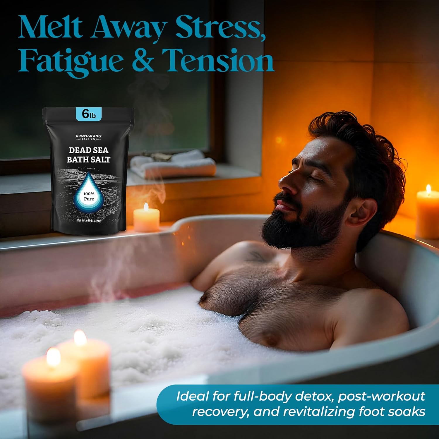 Aromasong Dead Sea Salt Bath Soak 6 Lbs. Bulk Pack – 100% Natural Dead Sea Salts for Soaking, Relaxation, and Detoxification of Skin, Dead Sea Salts for Bath to Rejuvenate and Refresh.
