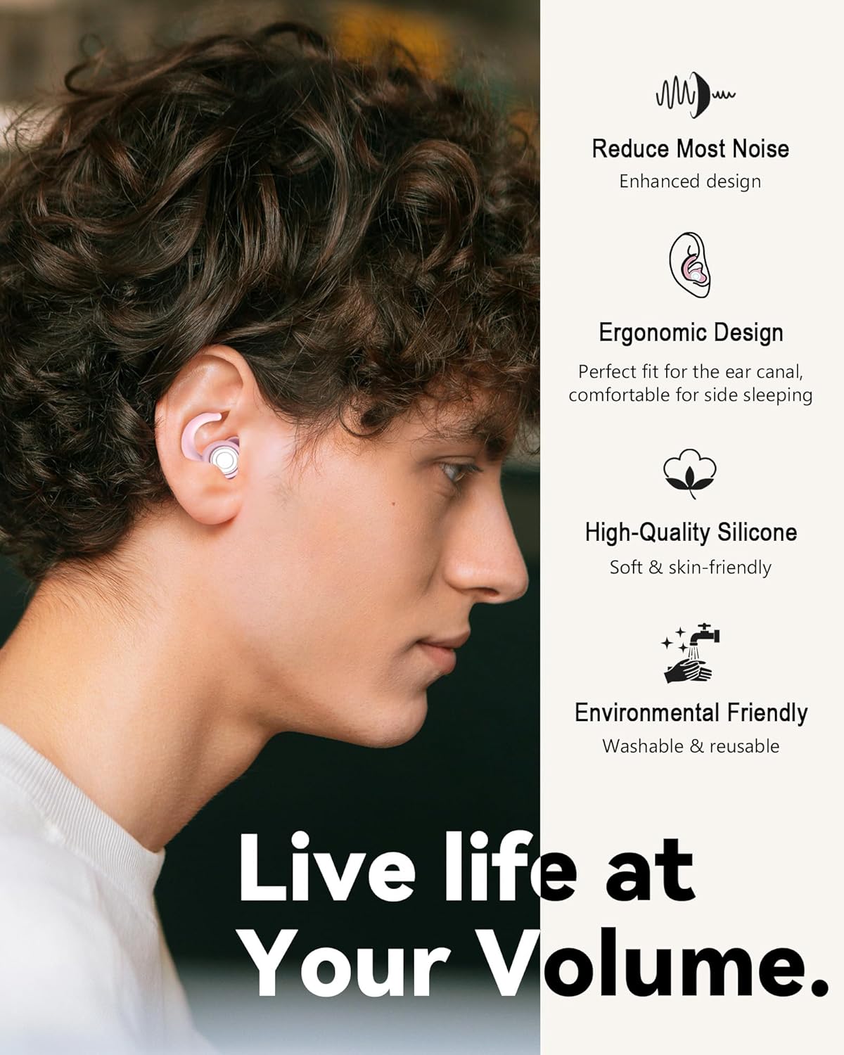 - Ergonomic Design:The ear plugs for sleep are designed with a bionic jellyfish and fit the ear canal 360 degrees. Even if you lie on your side or turn over, The sleeping ear plugs not easy to slip off. Breathable and comfortable, no pain to wear for a long time.It's worth mentioning that the non-in-ear design of our upgraded ear plugs for noise reduction eliminates the need to insert them deeply into the ear canal, thus avoiding the risk of hearing loss.