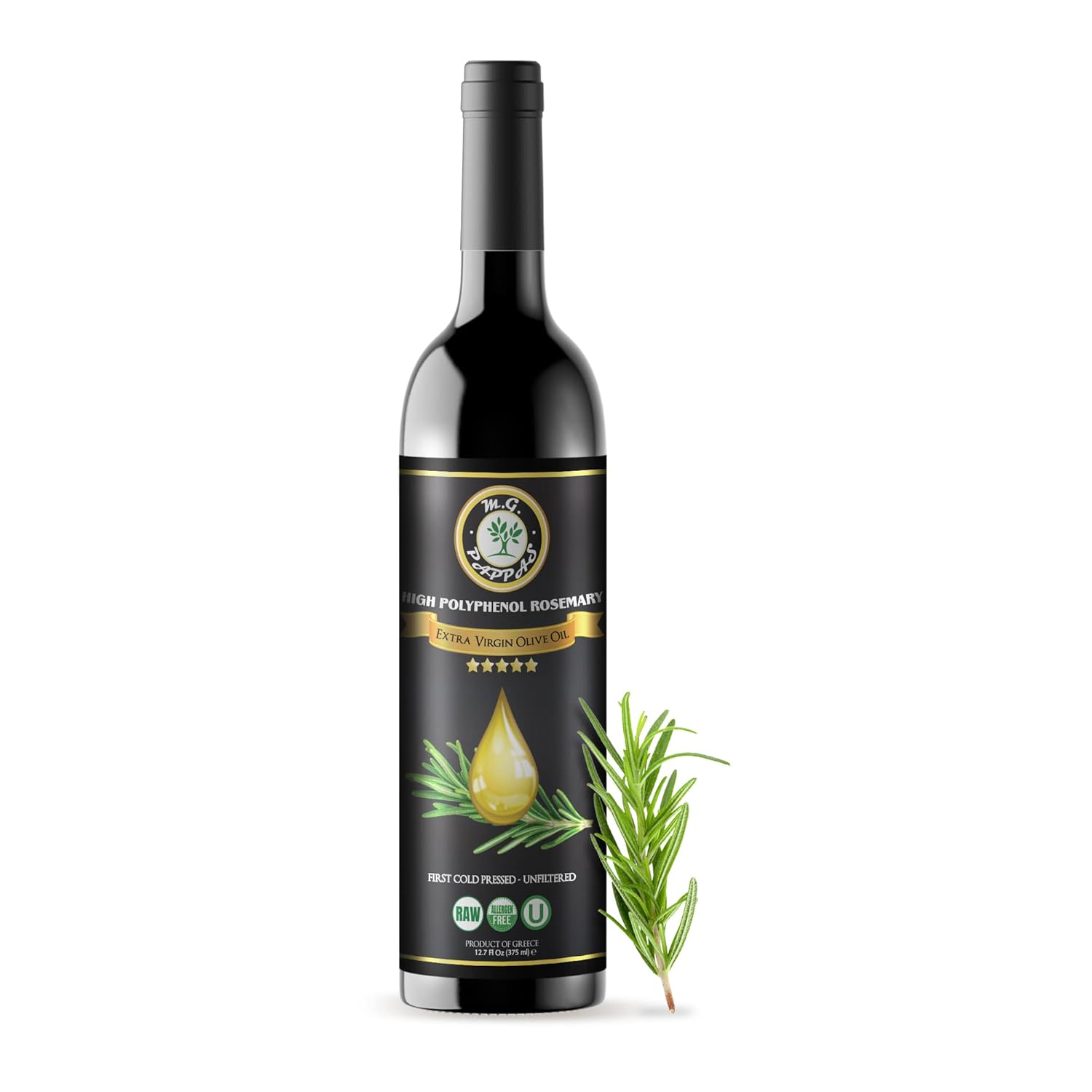 M.G. PAPPAS Rosemary Infused Olive Oil - High Polyphenol Rich Extra Virgin Olive Oil Unfiltered - Polyphenol Lab Report 650mg/kg - Cold Pressed Greek EVOO Award Winning - Rosemary Oil Cooking 12.7 Oz