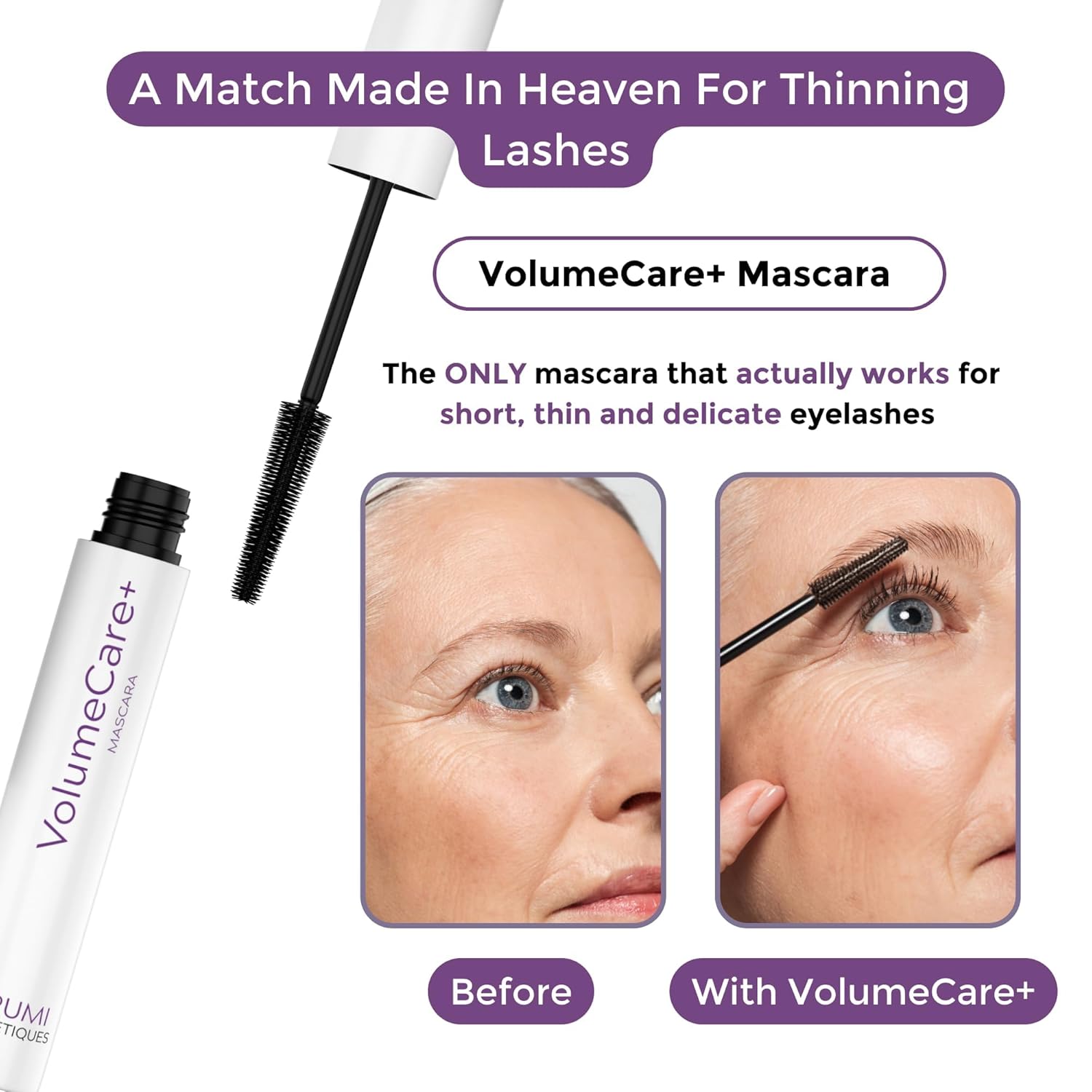 - DESIGNED FOR MATURE LASHES: VolumeCare+ Mascara is made to address common concerns for older women, like thinning or sparse lashes. Finally, enjoy a mascara that’s made exactly for you.