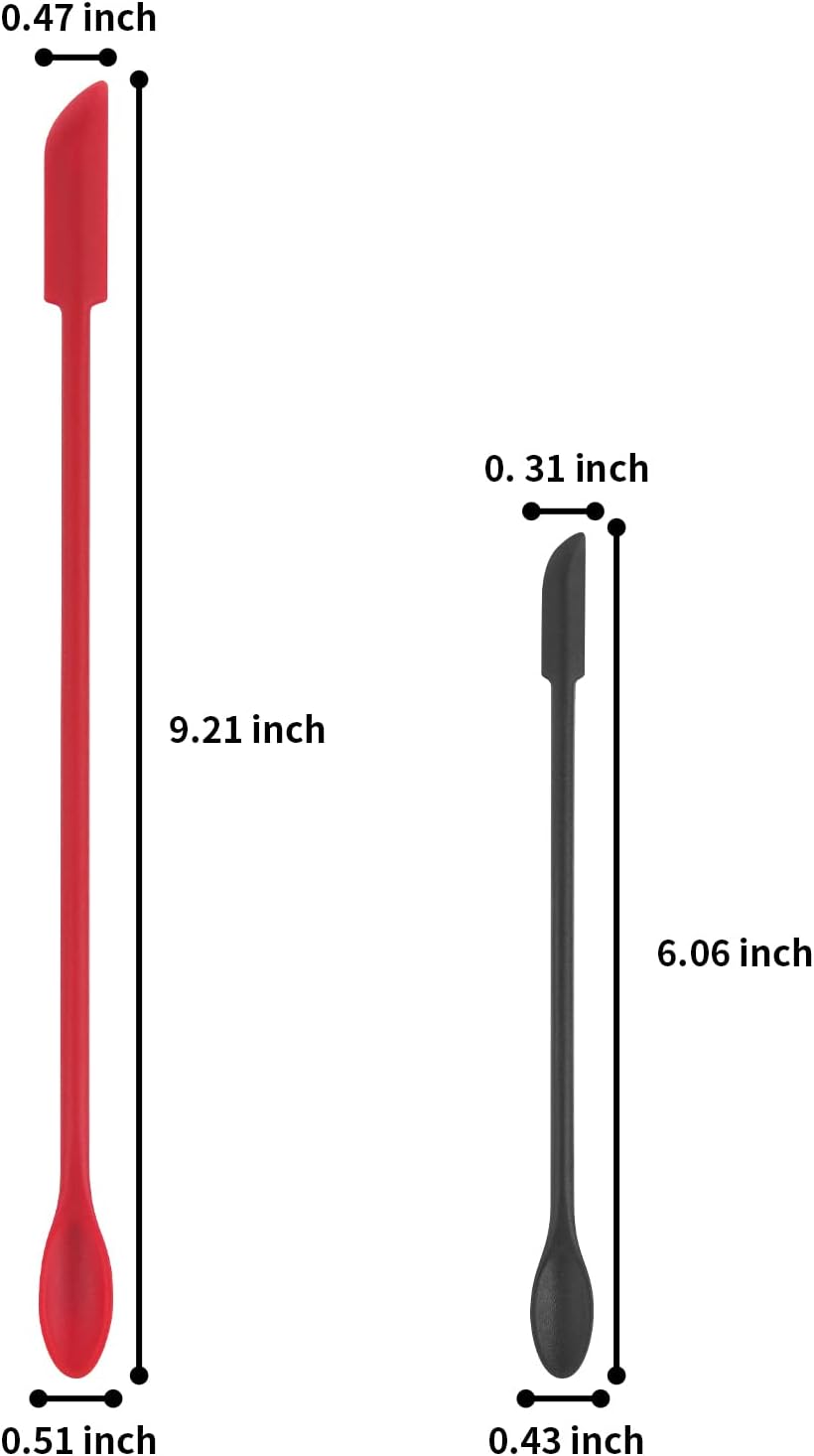 - What you will get. Come with one 9.2 inch length red makeup spatula and one 6 inch length black mini spatula for cosmetics. Double-ended design, one side is mini spoon and the other side is silicone scraper