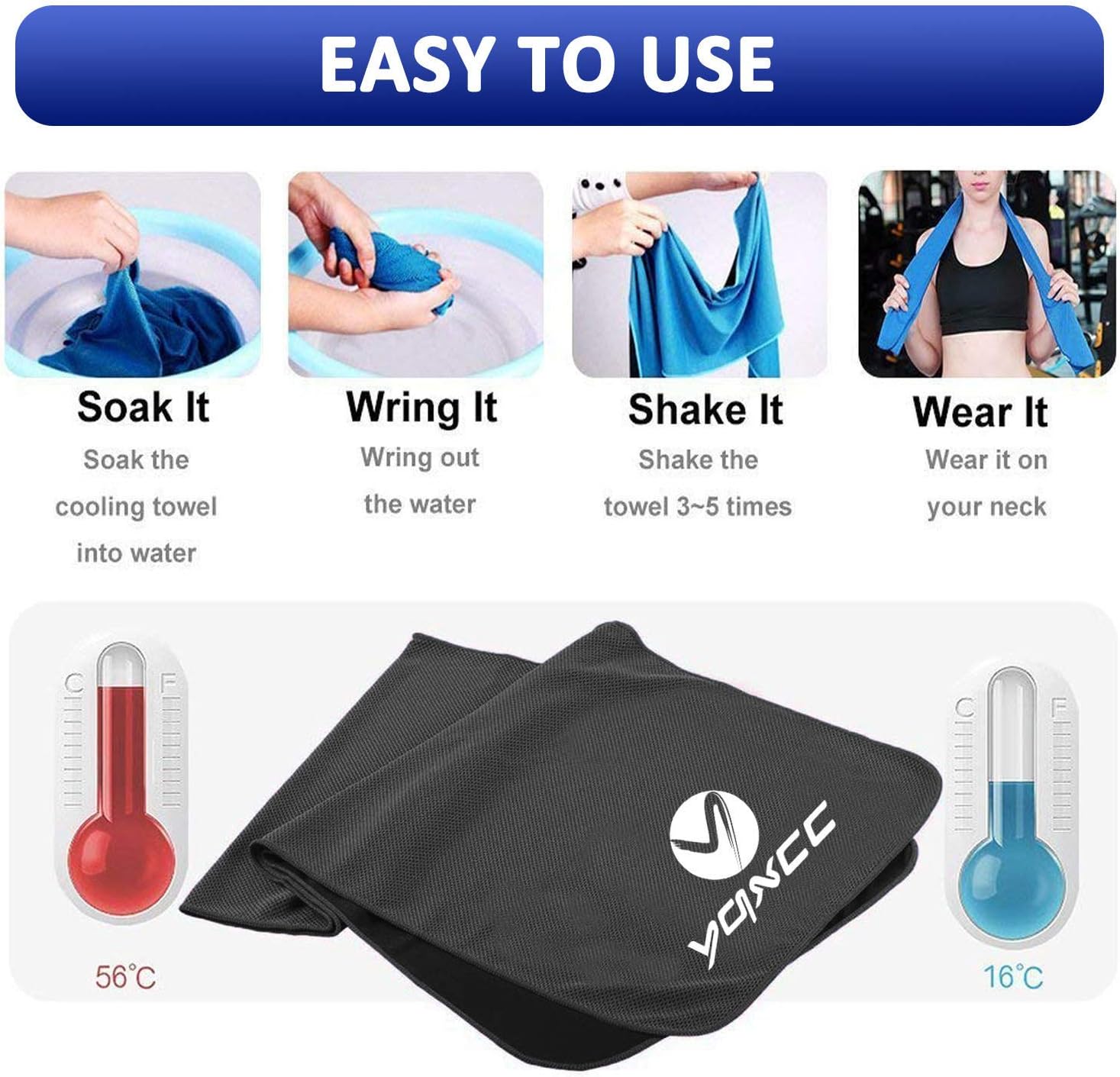 - Instant Cooling: The cooling towel is made of hyper-evaporate breathable material to wick sweat away from your skin and keep you cool