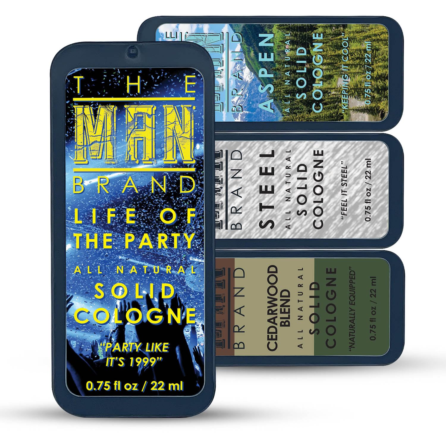 Solid Cologne Sample Set with Aspen Solid Perfume, Woodsman Solid Cologne, Steel, and Life of the Party Cologne - (Fellowship Solid Cologne Man Sampler Pack - 4 Pack - 0.75 oz each)