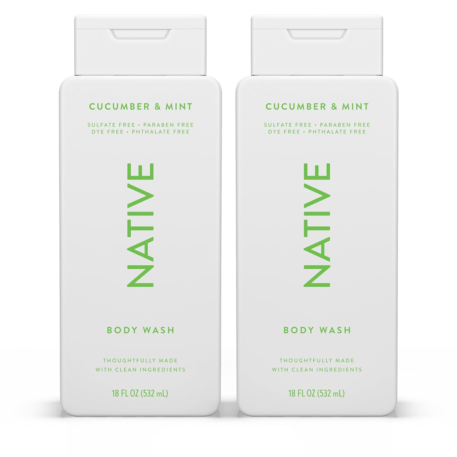 Native Body Wash Contains Naturally Derived Ingredients | For Women & Men, Sulfate, Paraben, & Dye Free Leaving Skin Soft and Hydrated | Cucumber & Mint 18 oz - 2 Pk