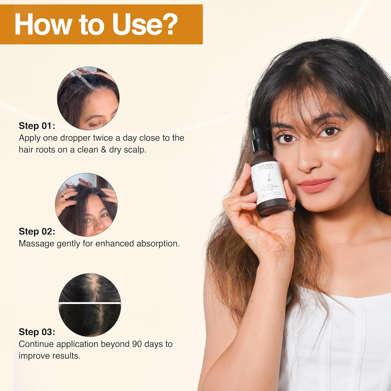 - FOR HAIRFALL : The serum gets deep into your hair bowl & strengthens weak hair shafts & follicles to stop hair fall. It aids the communication of cells & holds the cells together to prevent hair loss.