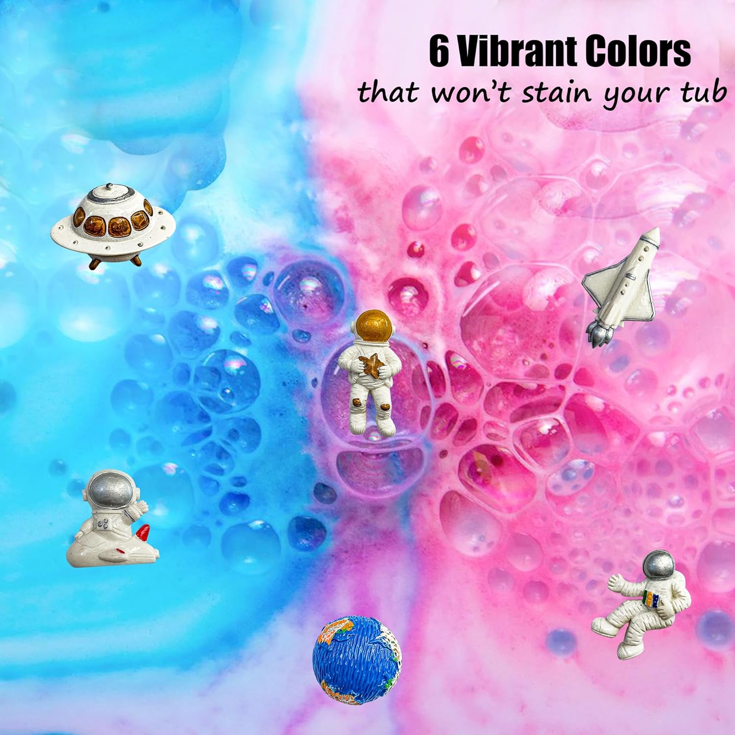 - 6 Colorful Kids bath bombs with 3D Astronauts. Your kiddo will love the colorful scented water, bubbly foam, and Planet bath bombs surprises they can play with and decorate refrigerators, whiteboards, student lockers, etc